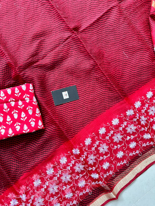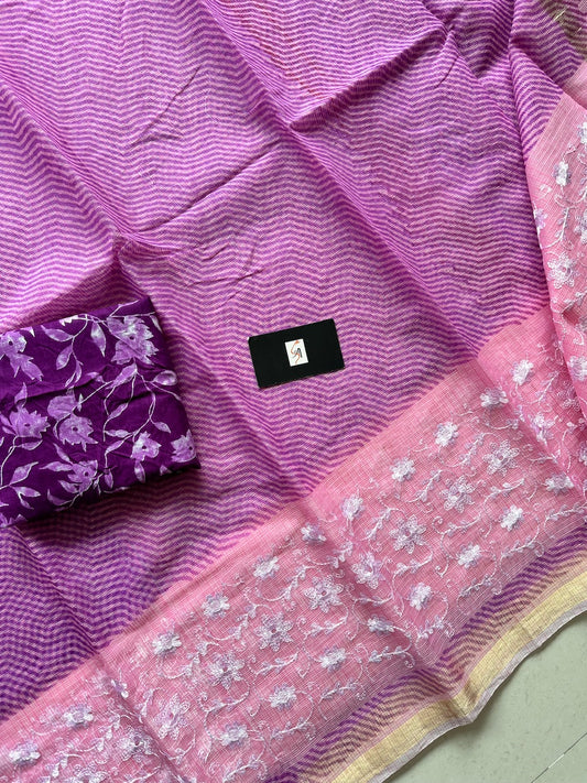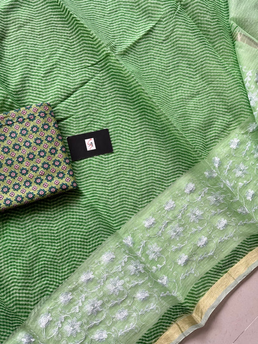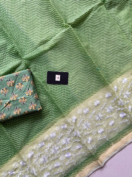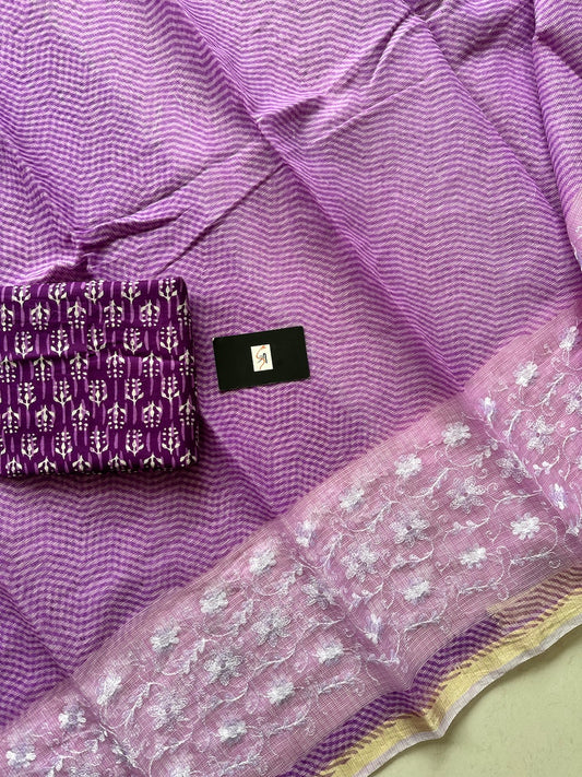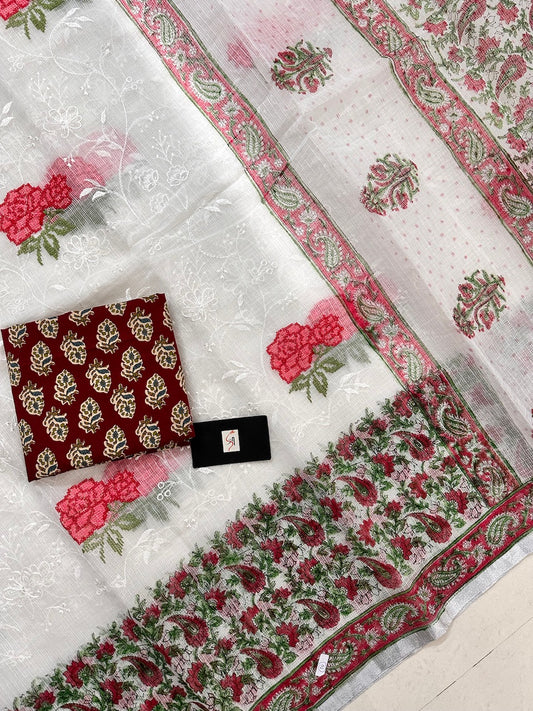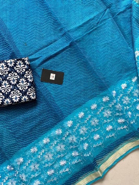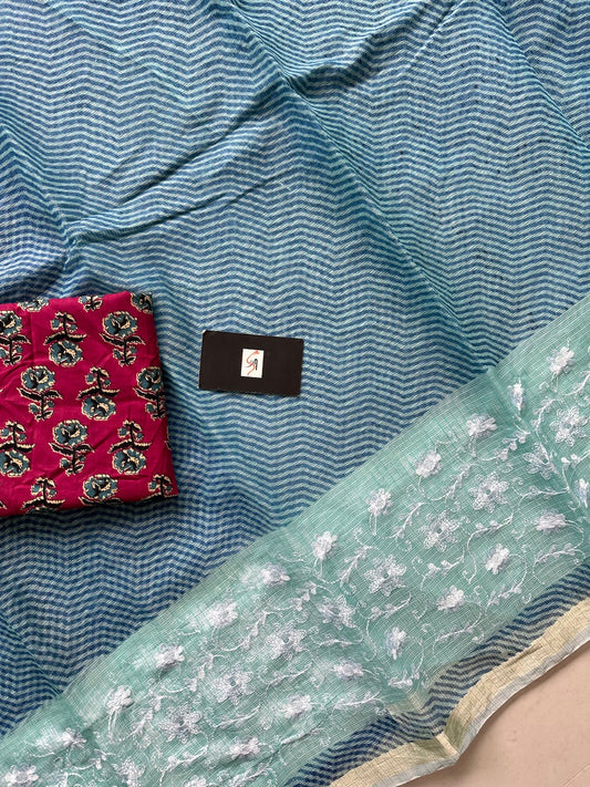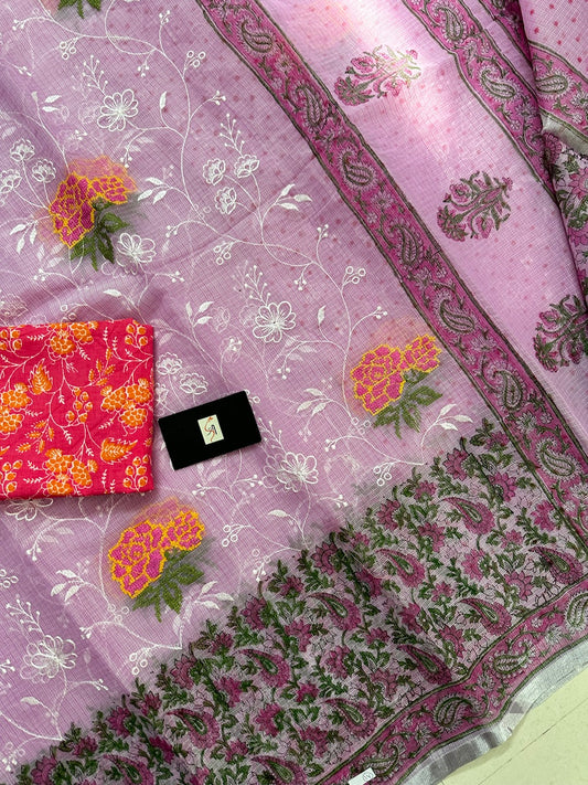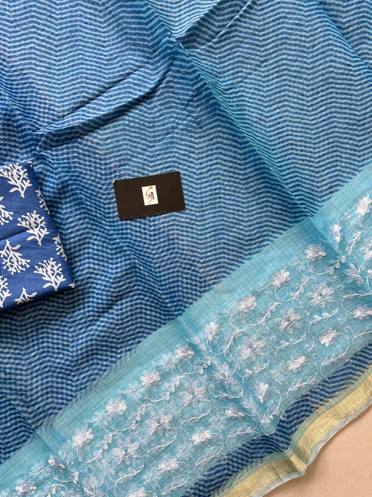 Embroidered HandBlock Printed Kota Cotton Doria Saree