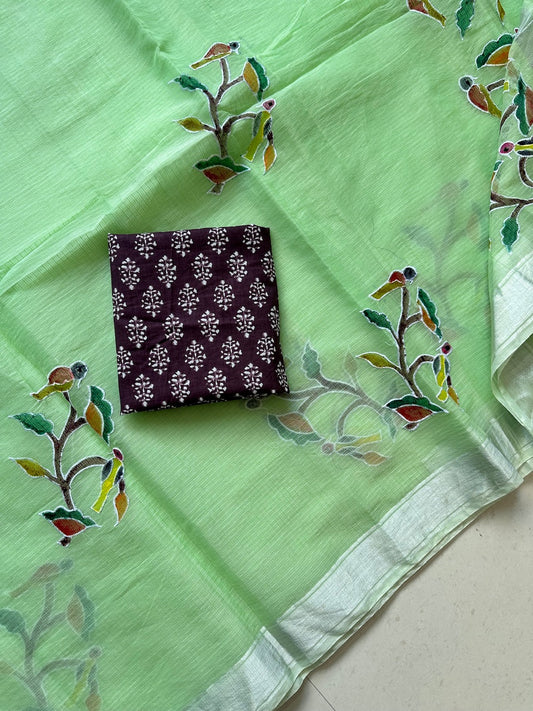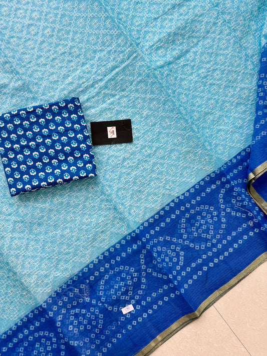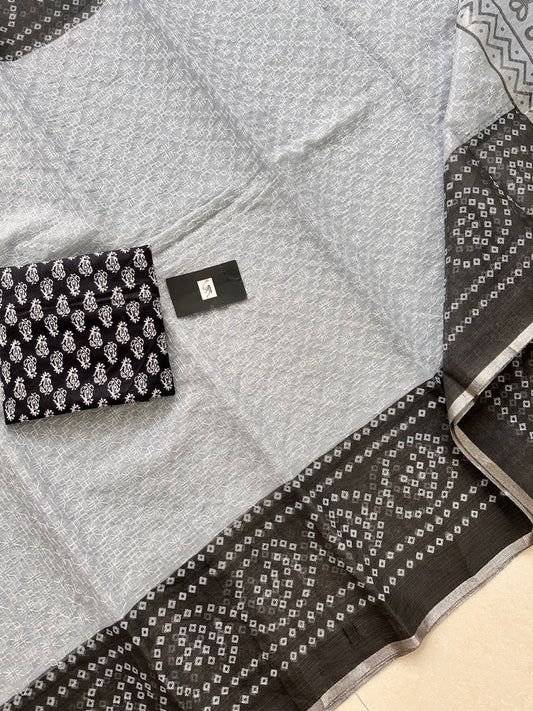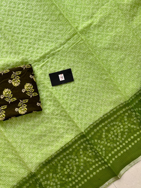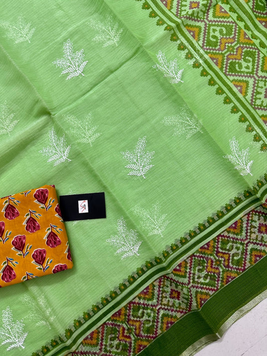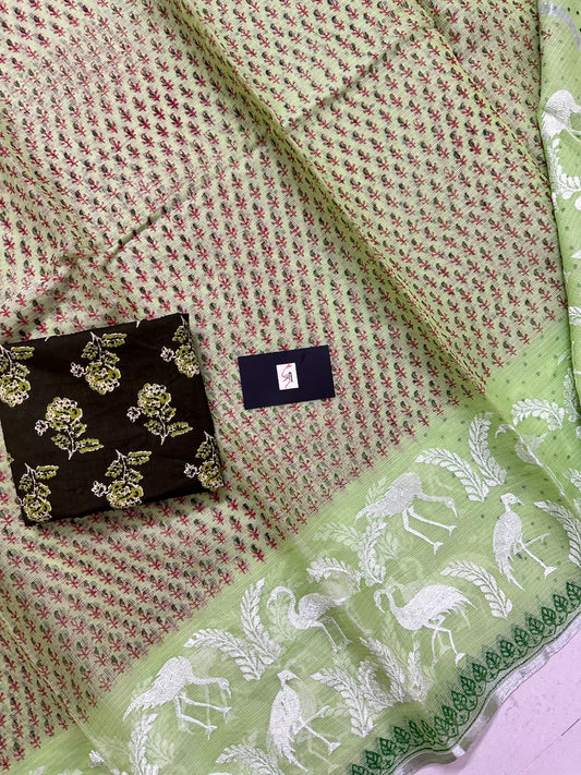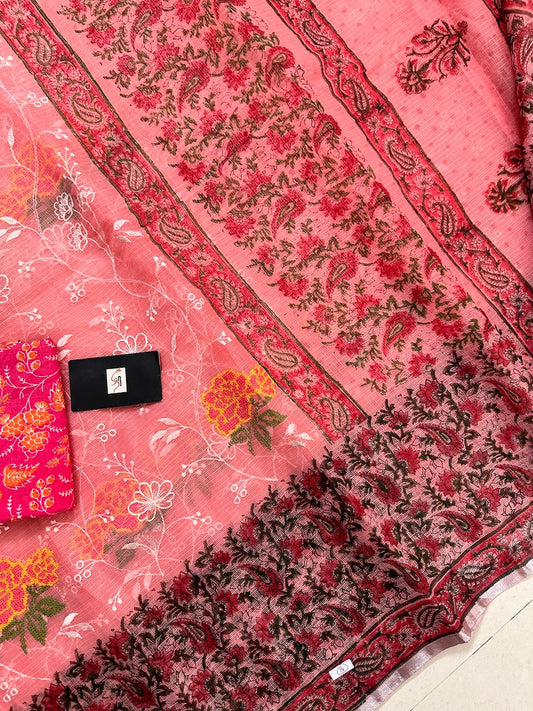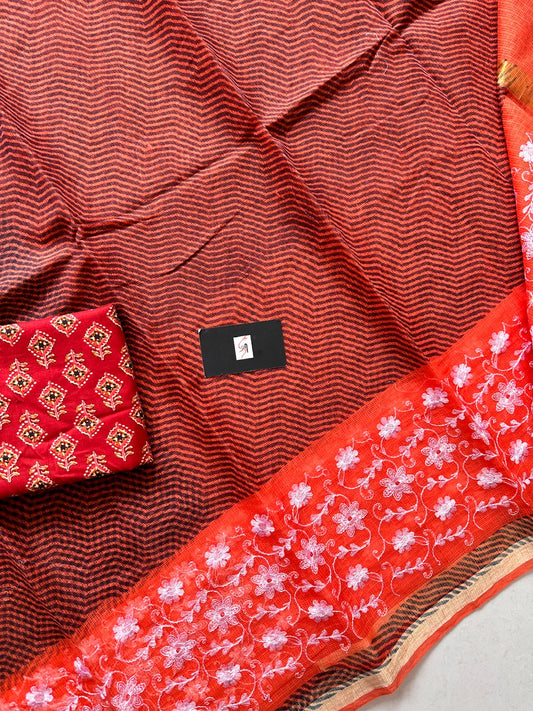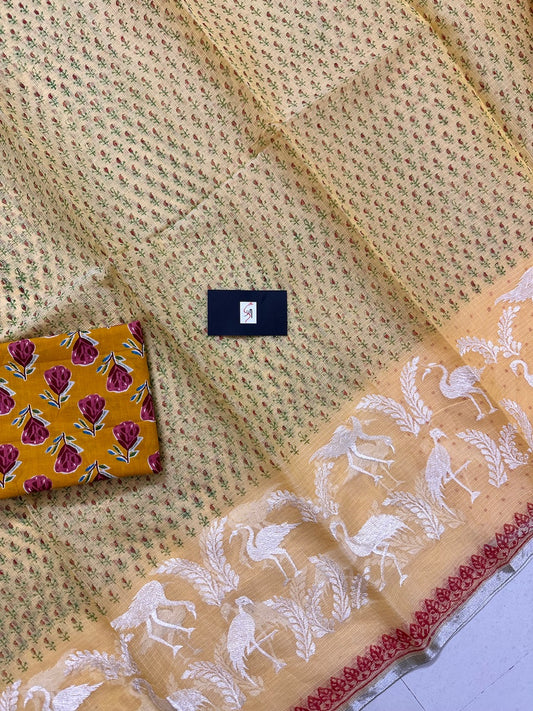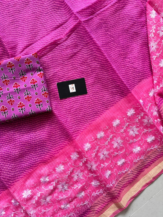 Embroidered HandBlock Printed Kota Cotton Doria Saree