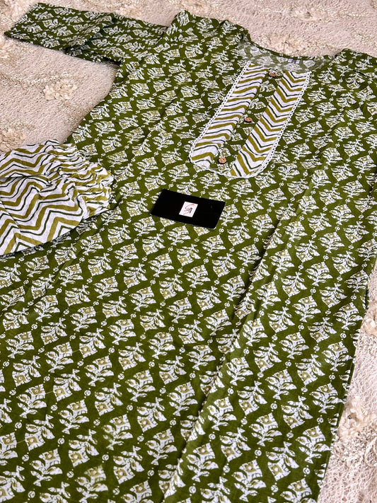 Pure HandBlock Printed Cotton Kurta N Pant Set