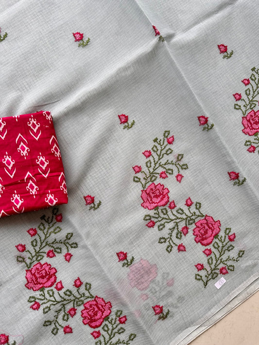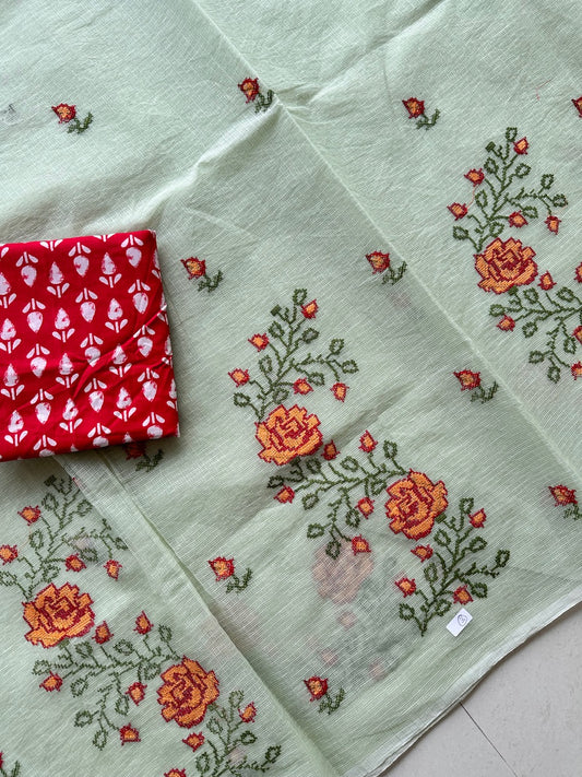 HandBlock Printed Kota Cotton Half Doria Half Tissue Saree