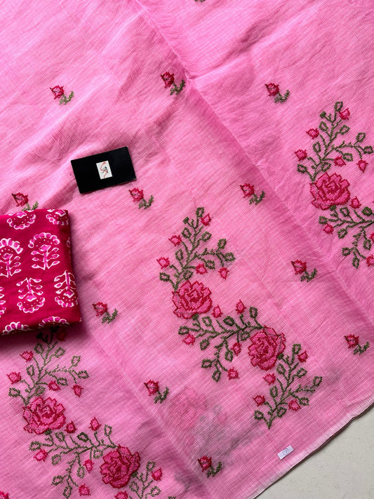 HandBlock Printed Kota Cotton Doria Tissue Saree