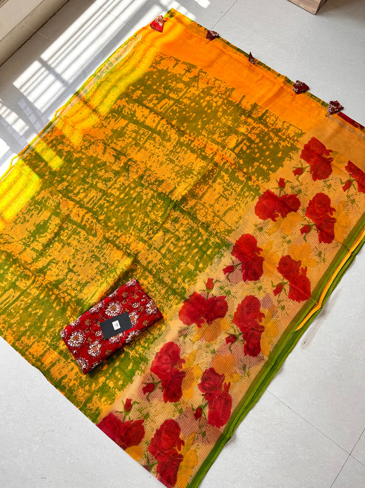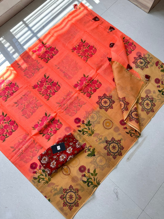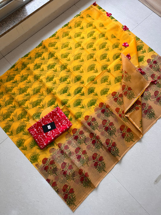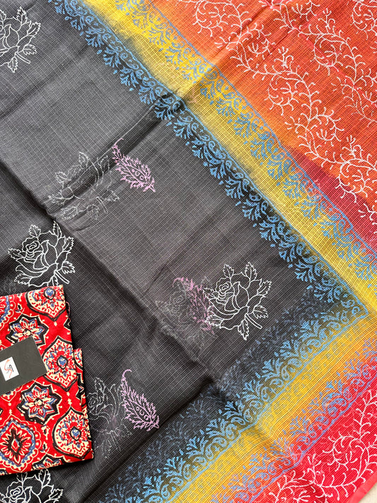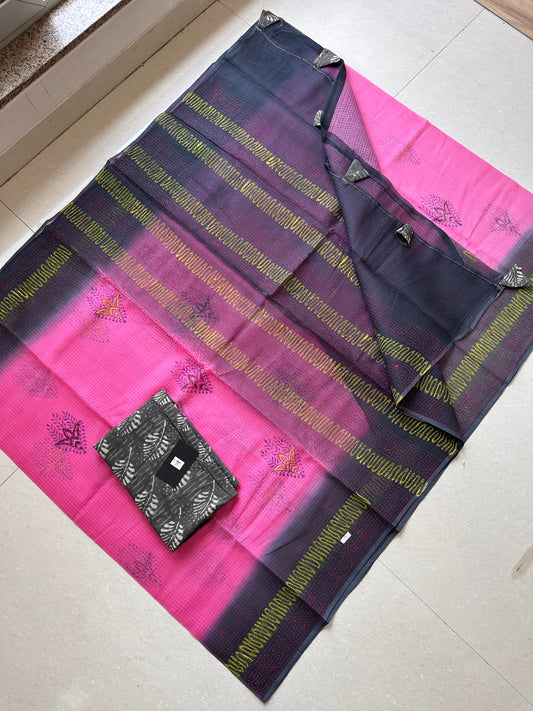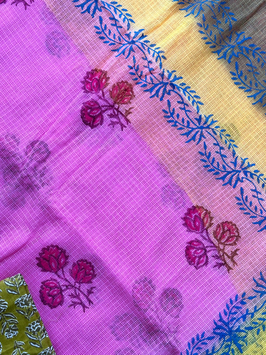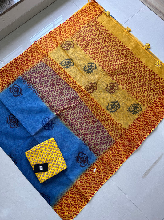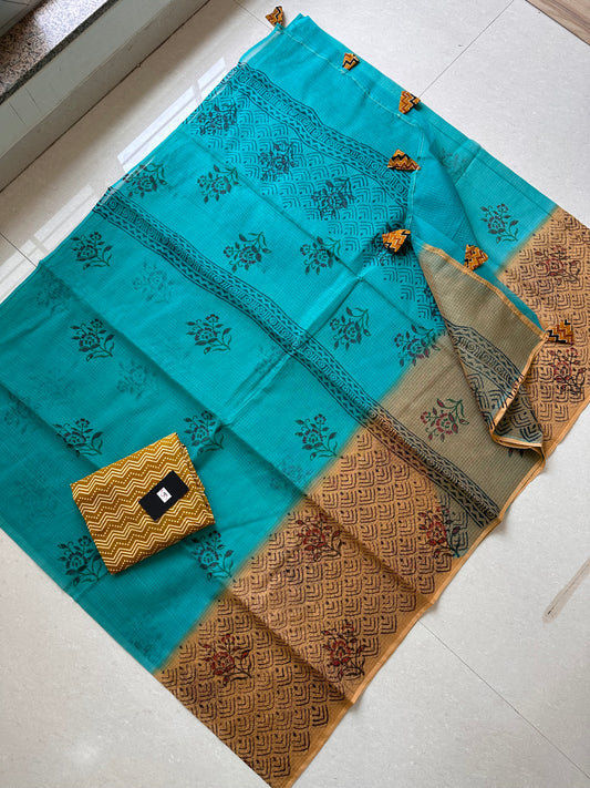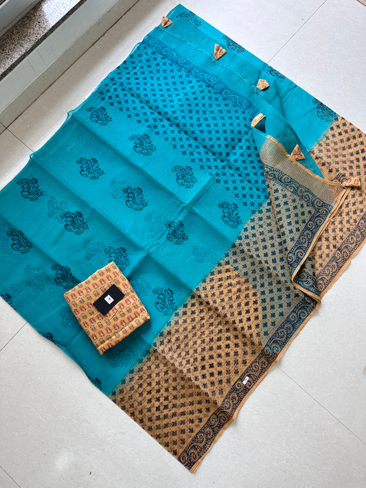 HandBlock Printed Kota Cotton Doria Saree
