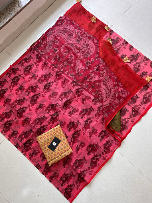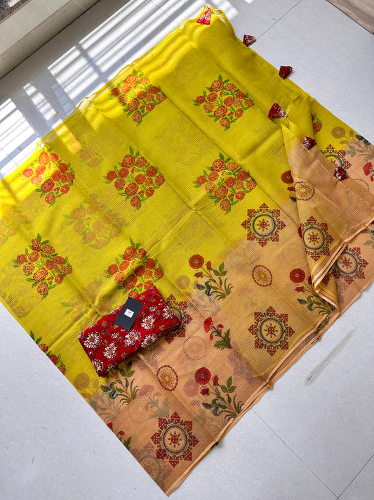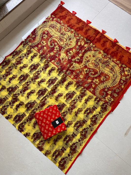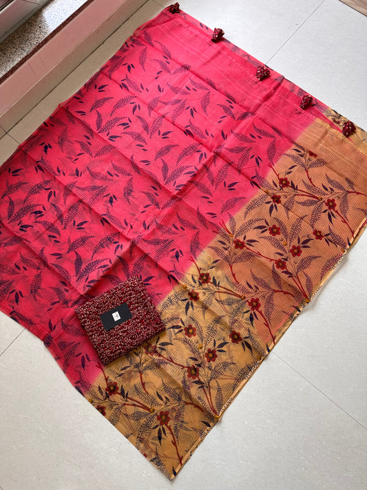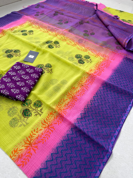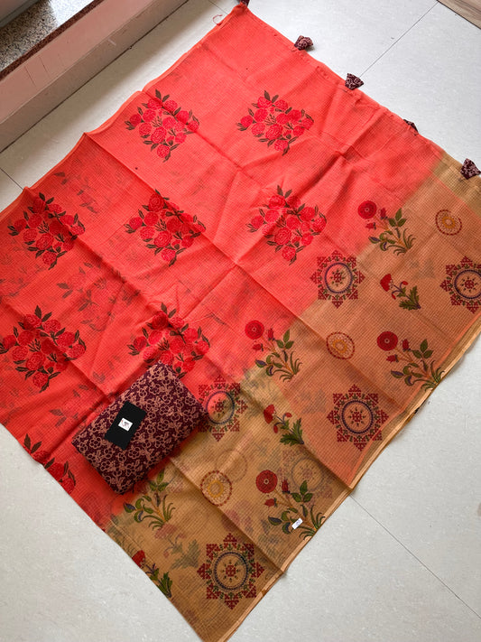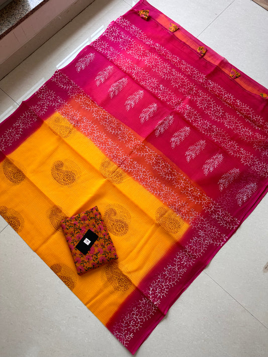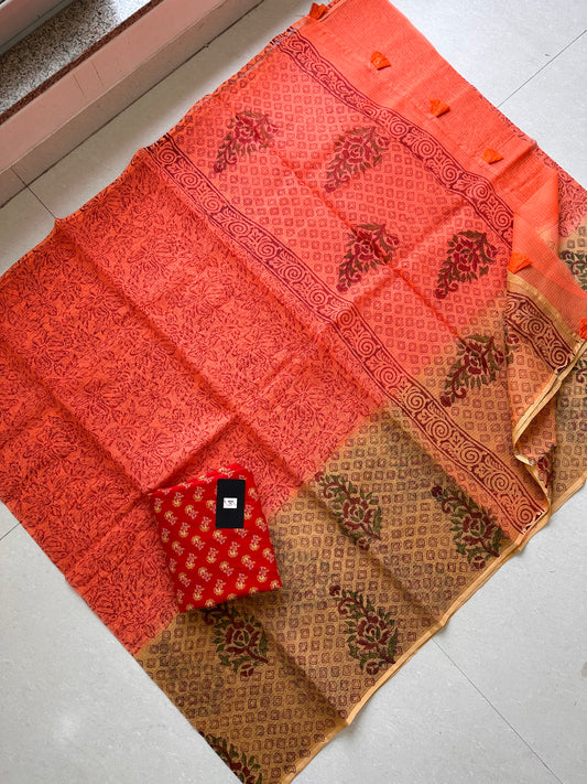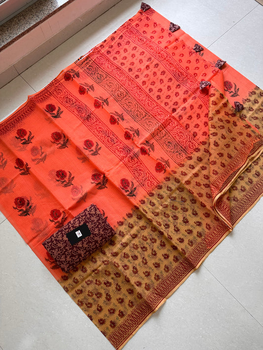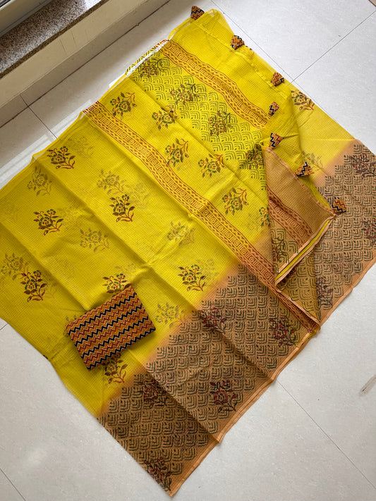 HandBlock Printed Pure Kota Cotton Doria Saree