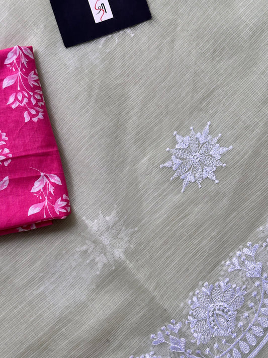 Embroidered Kota Cotton Doria Saree
