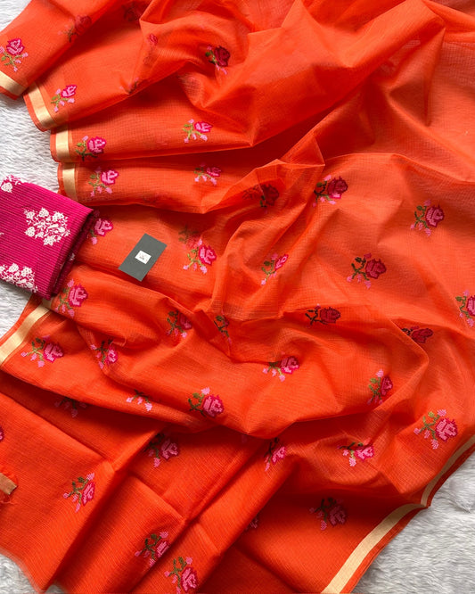 Embroidered Kota Cotton Doria Saree
