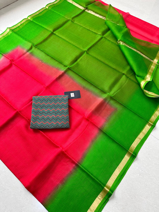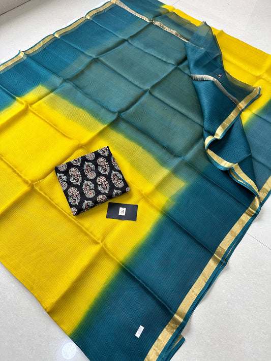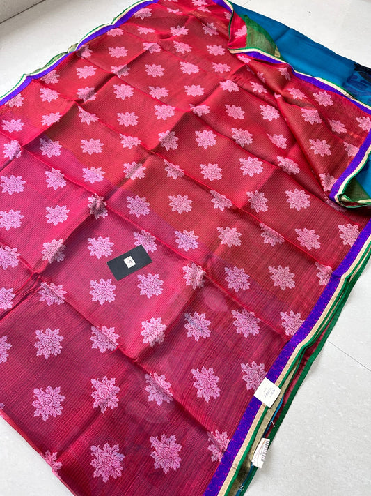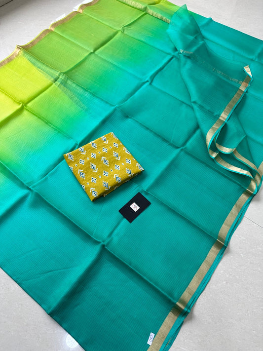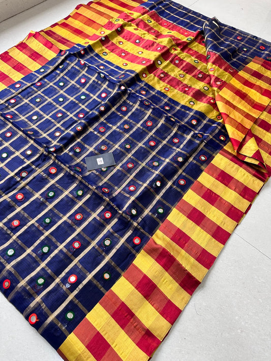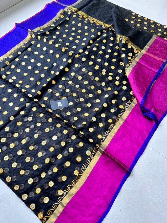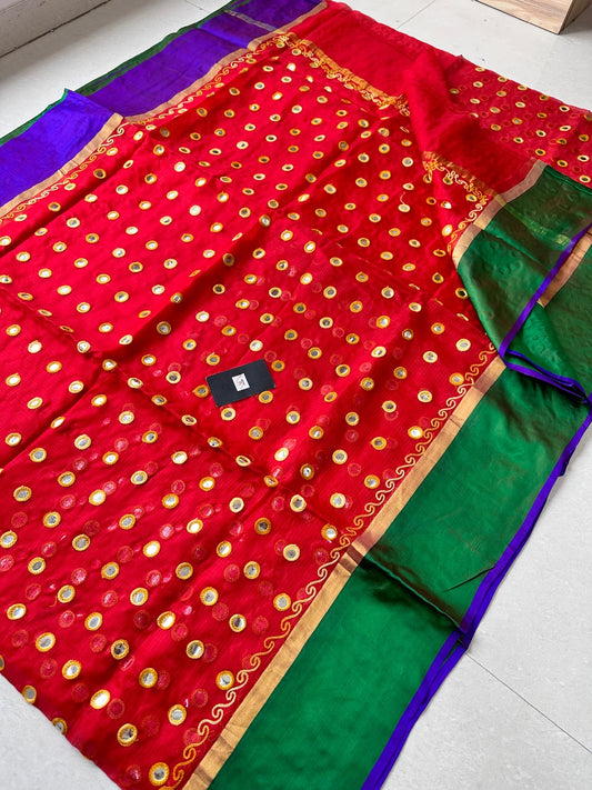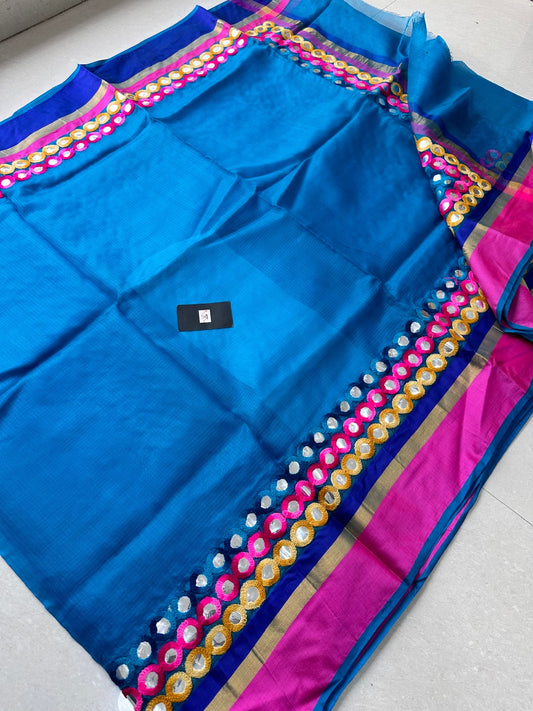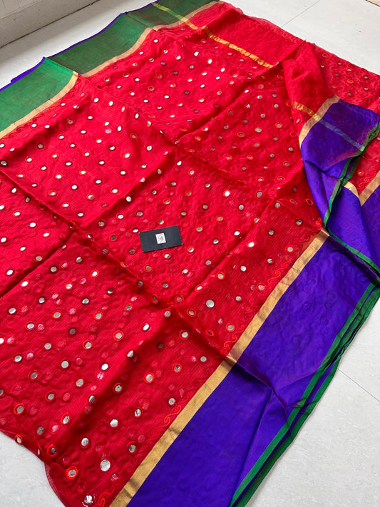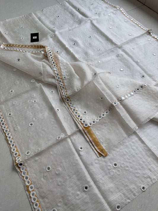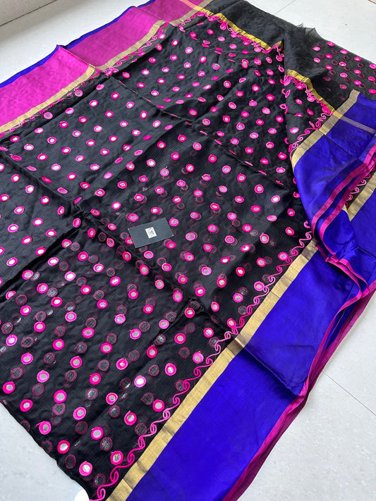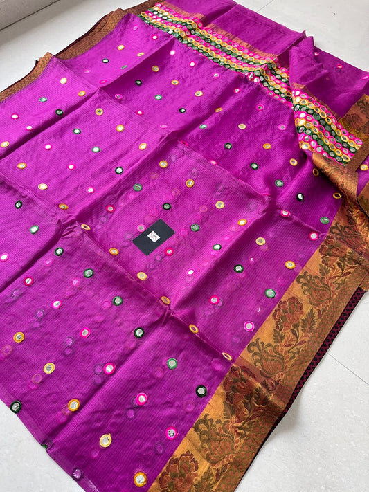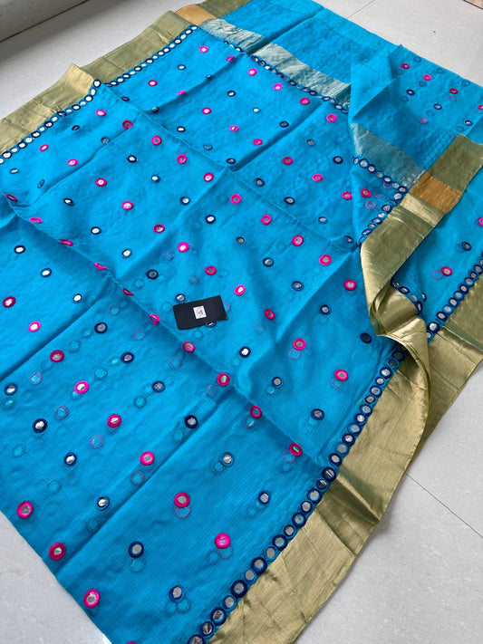 Pure Foil Mirror Embroidered Kota Silk Saree