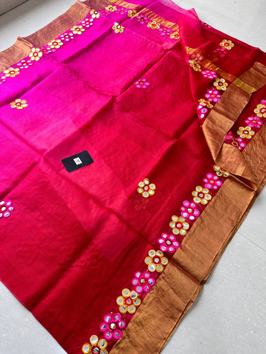 Pure Foil Mirror Embroidered Kota Silk Saree