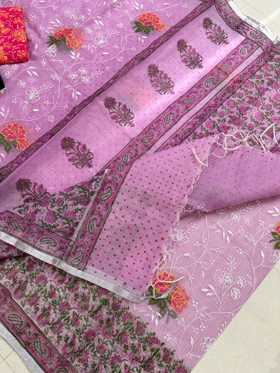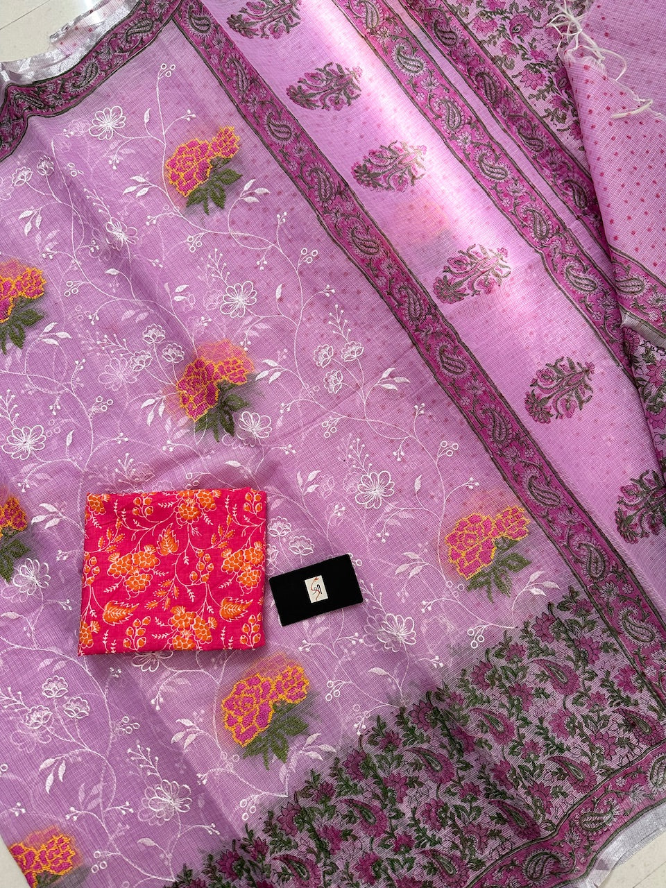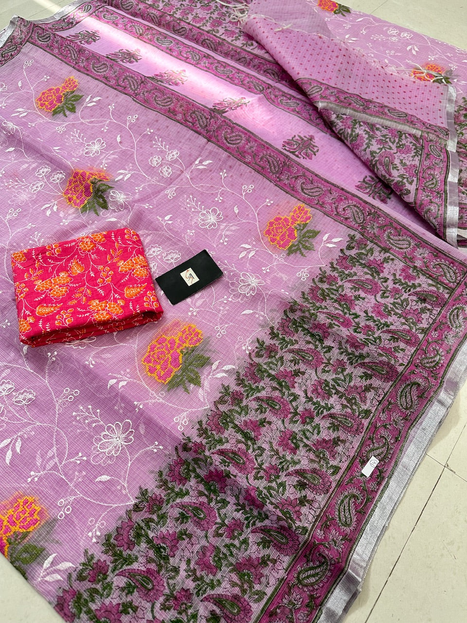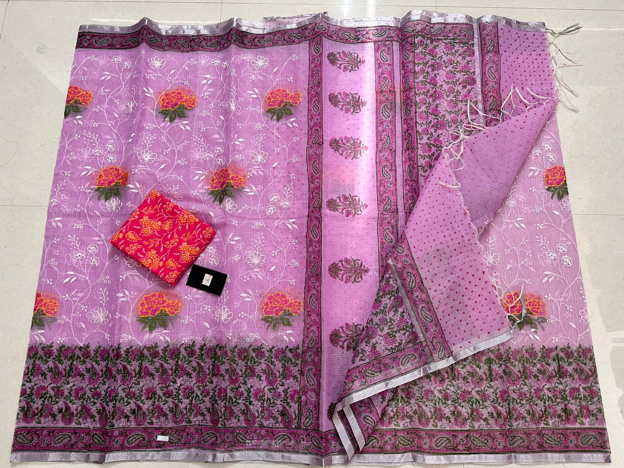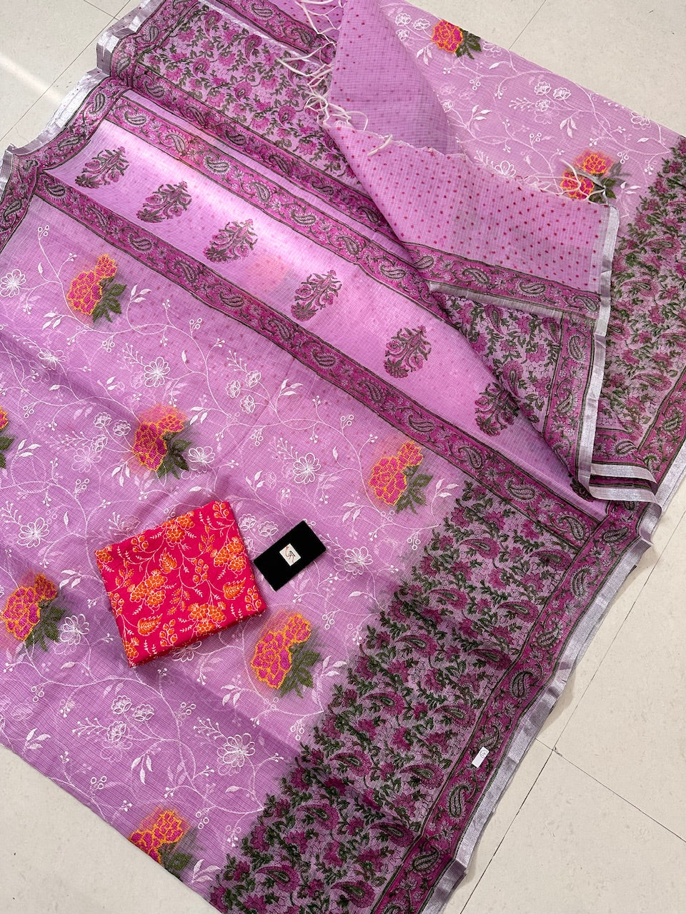 Embroidered HandBlock Printed Kota Cotton Doria Saree