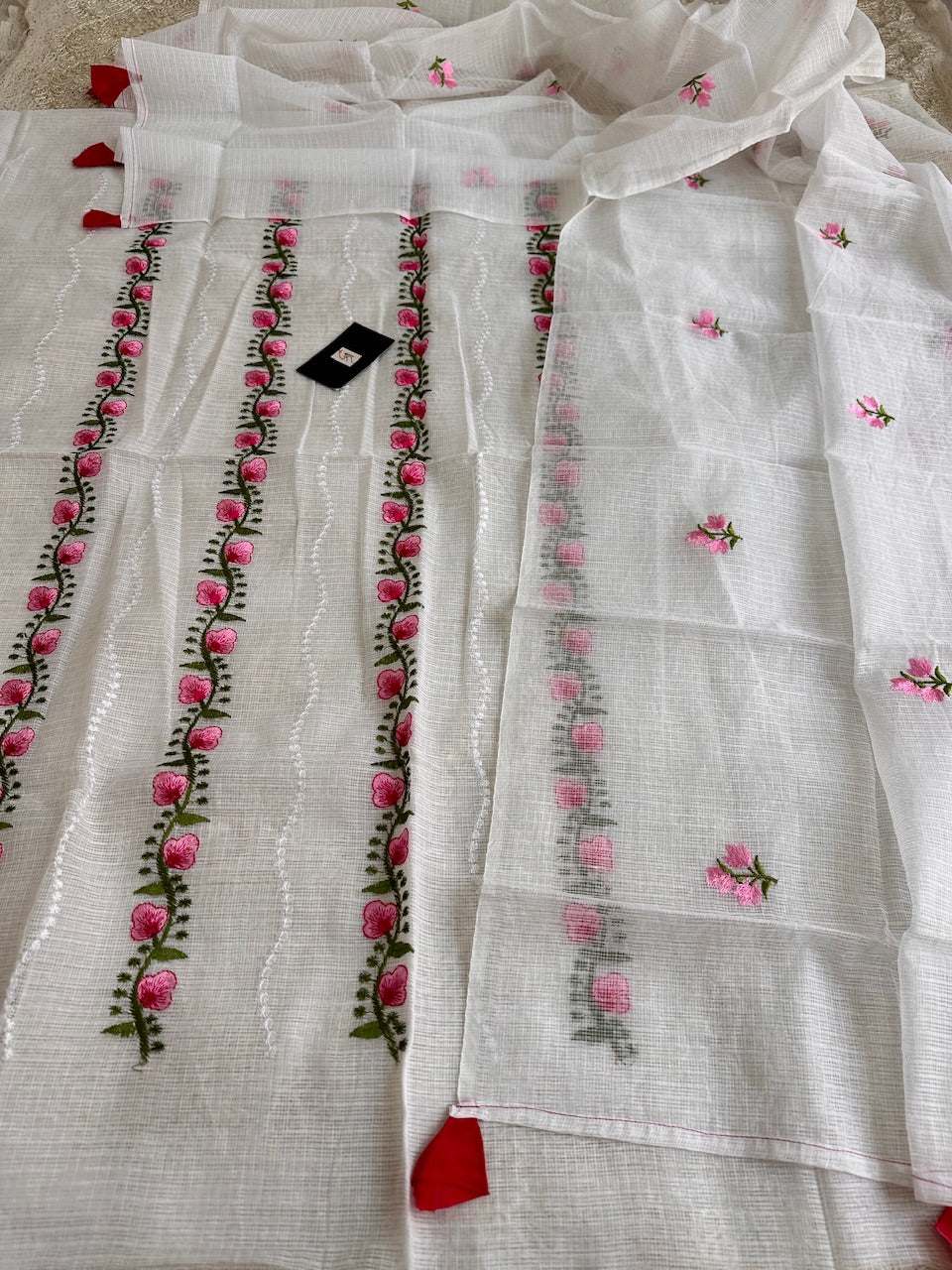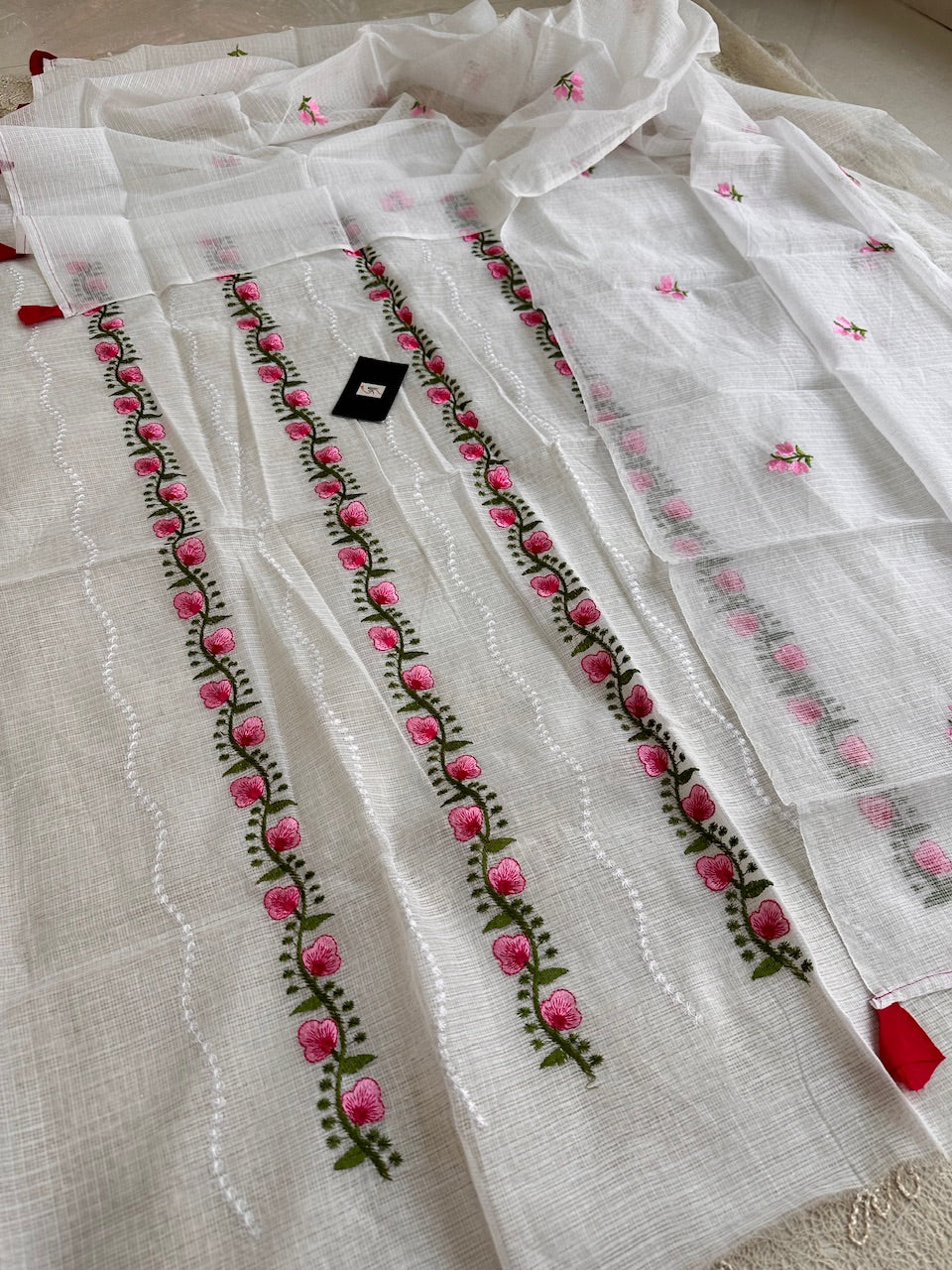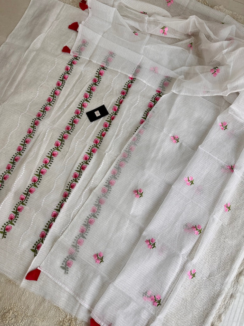 • Embroidery Crafted Kota Cotton Doria Kurta with Kota Cotton Dupatta set with Elegant Thread Embroidery Detailing