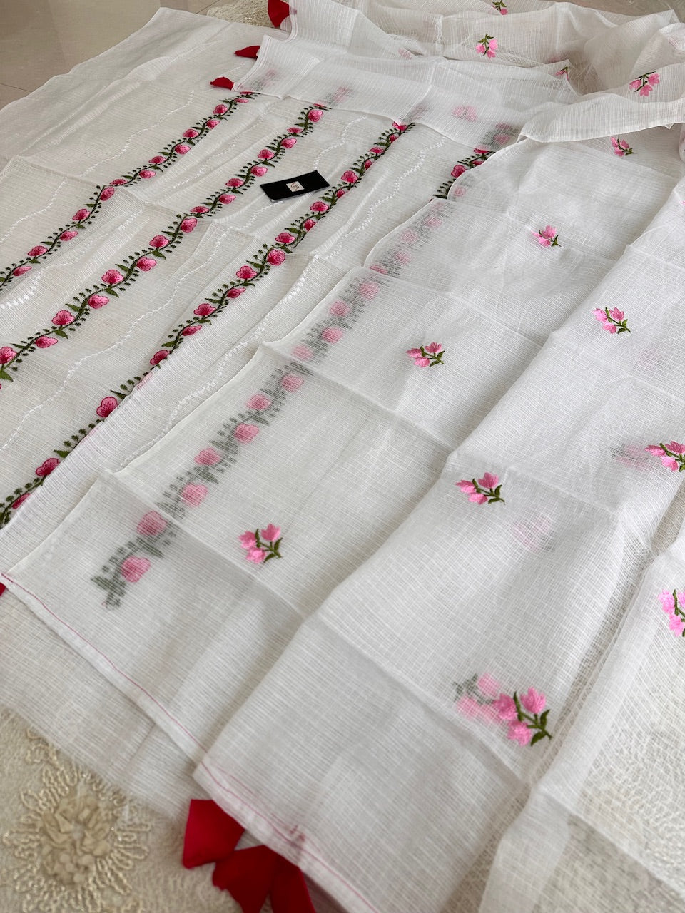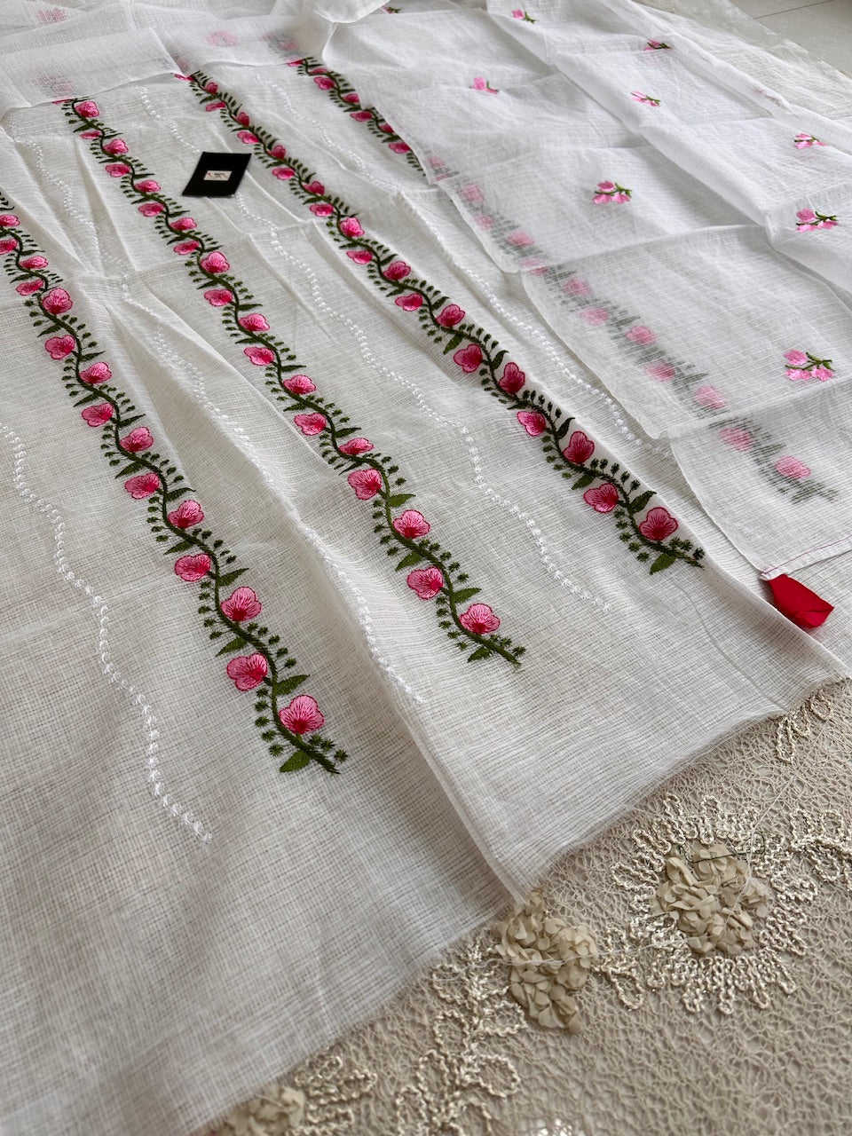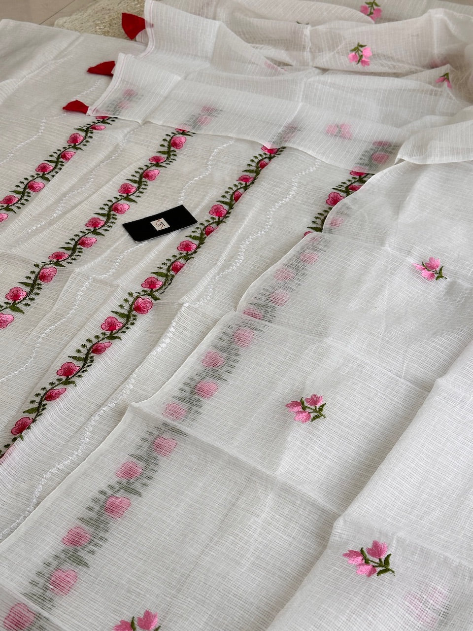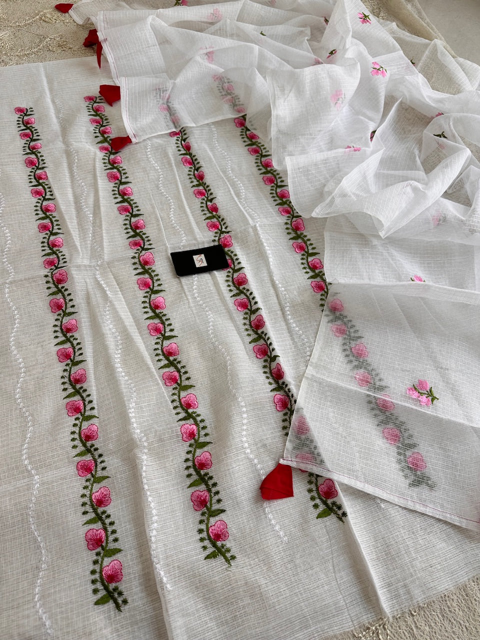 • Embroidery Crafted Kota Cotton Doria Kurta with Kota Cotton Dupatta set with Elegant Thread Embroidery Detailing