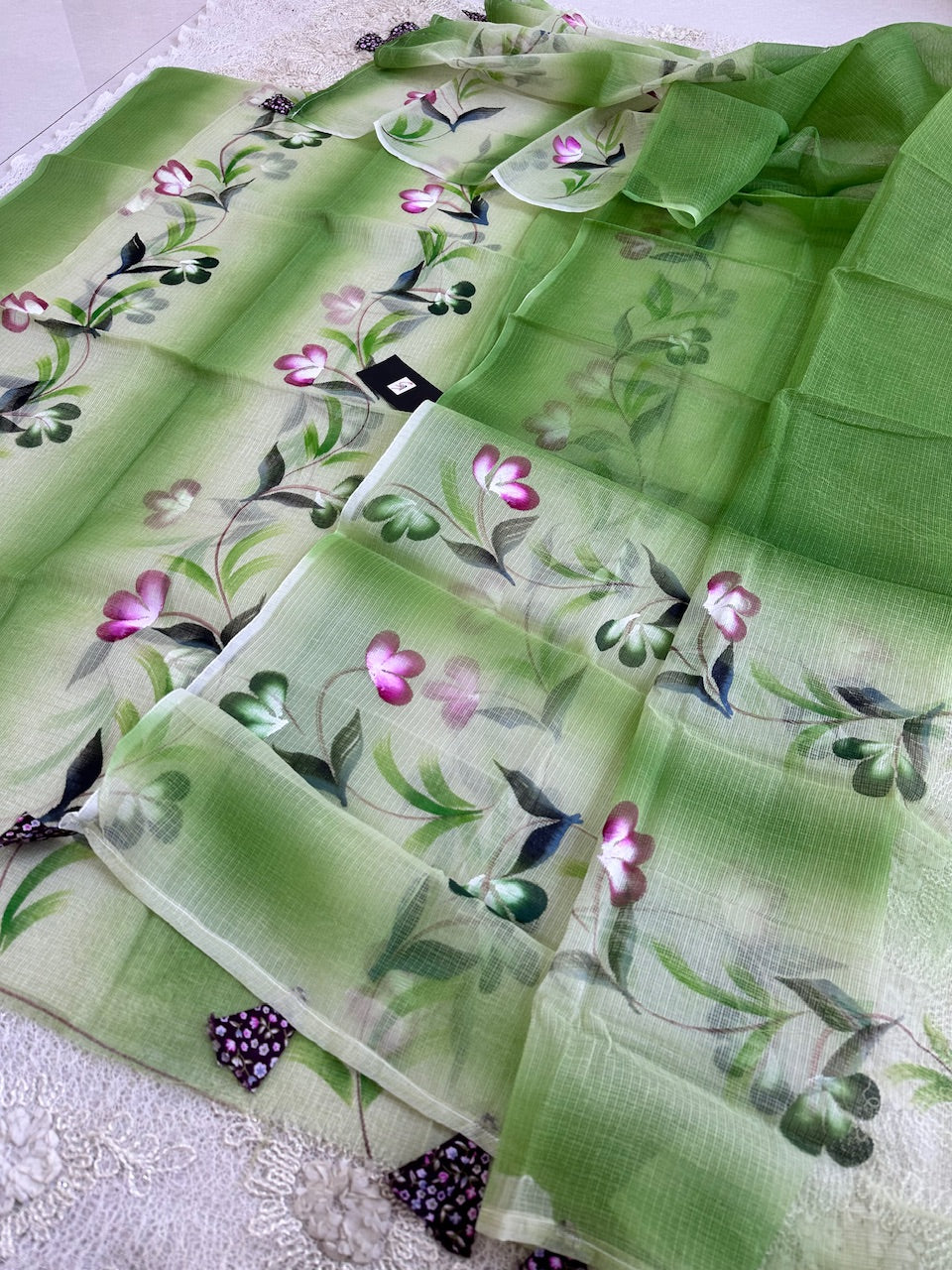 • Handpainted Crafted Kota Cotton Doria Kurta with Kota Cotton Dupatta