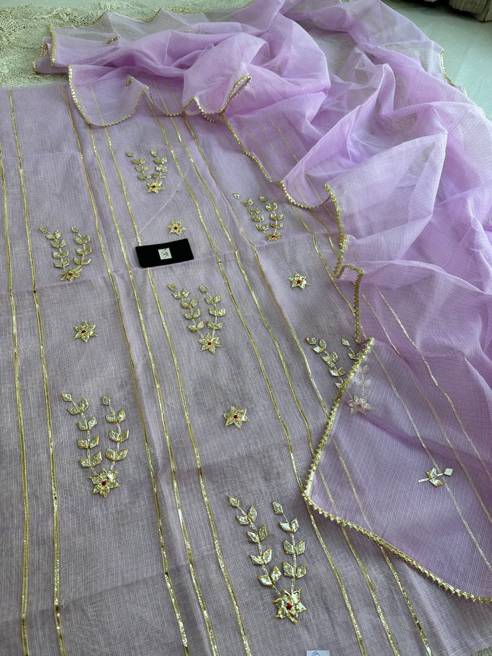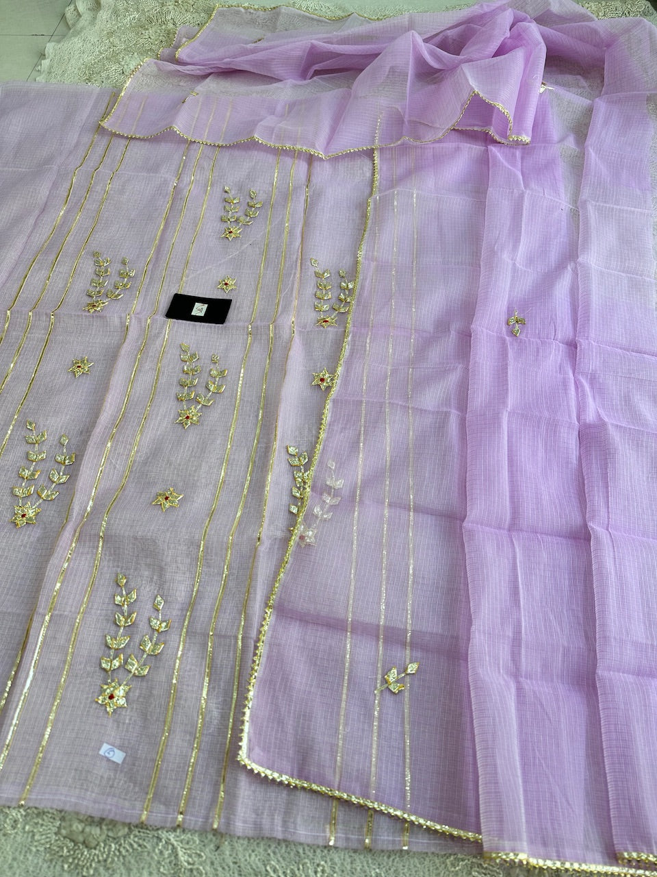 • Jaipuri Kachi Gota Patti Embroidery Crafted Kota Cotton Doria Kurta with Kota Cotton Doria Dupatta set