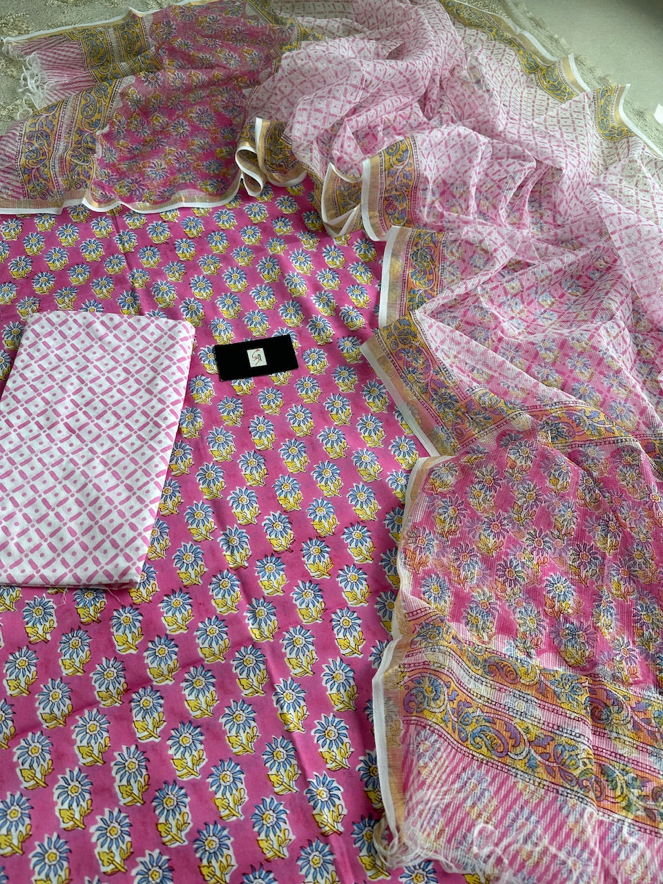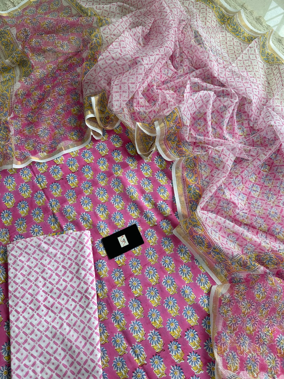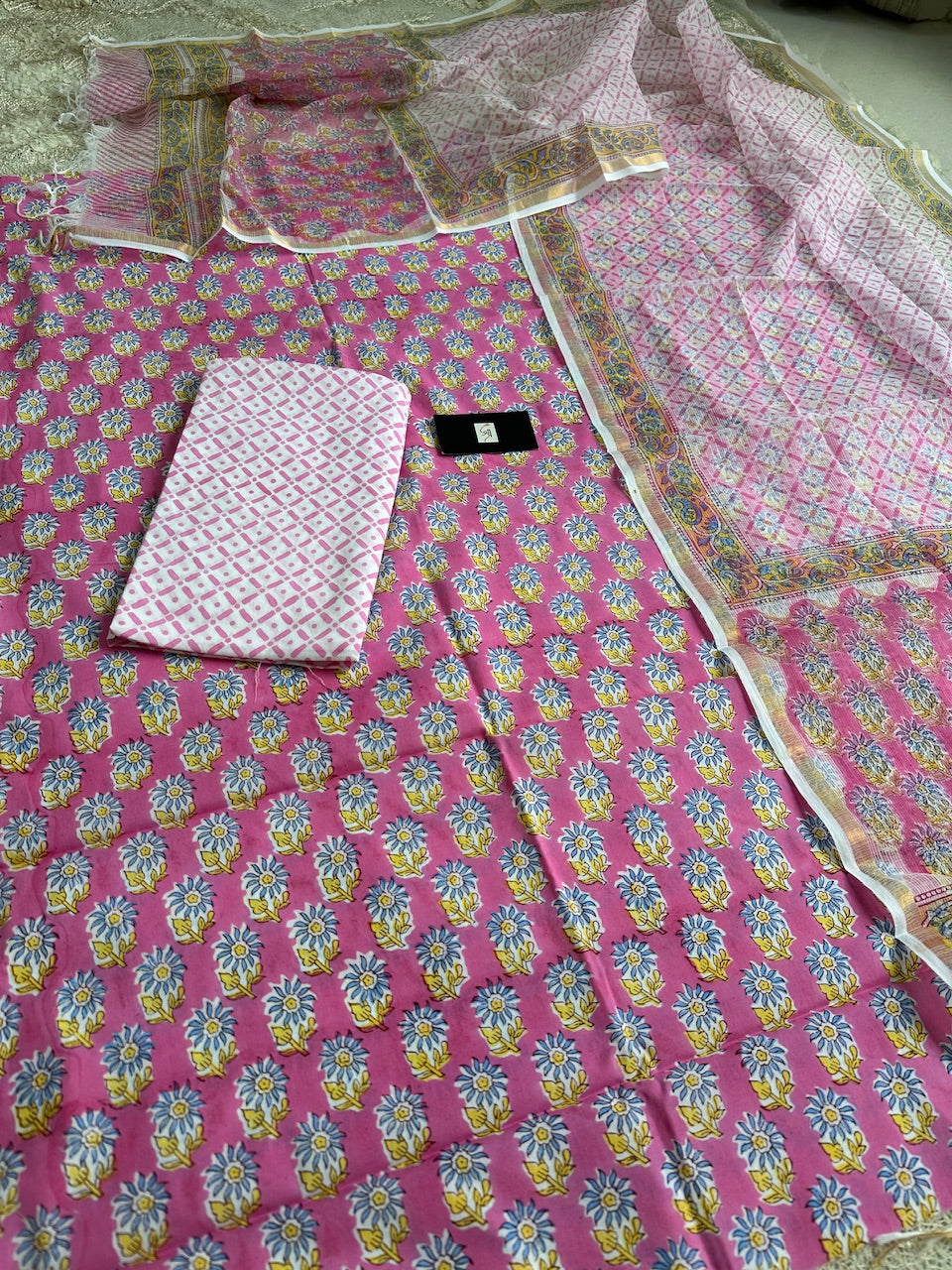 • Pure Handblockprint Premium Cotton Top and Bottom with Kota Cotton Doria Dupatta set