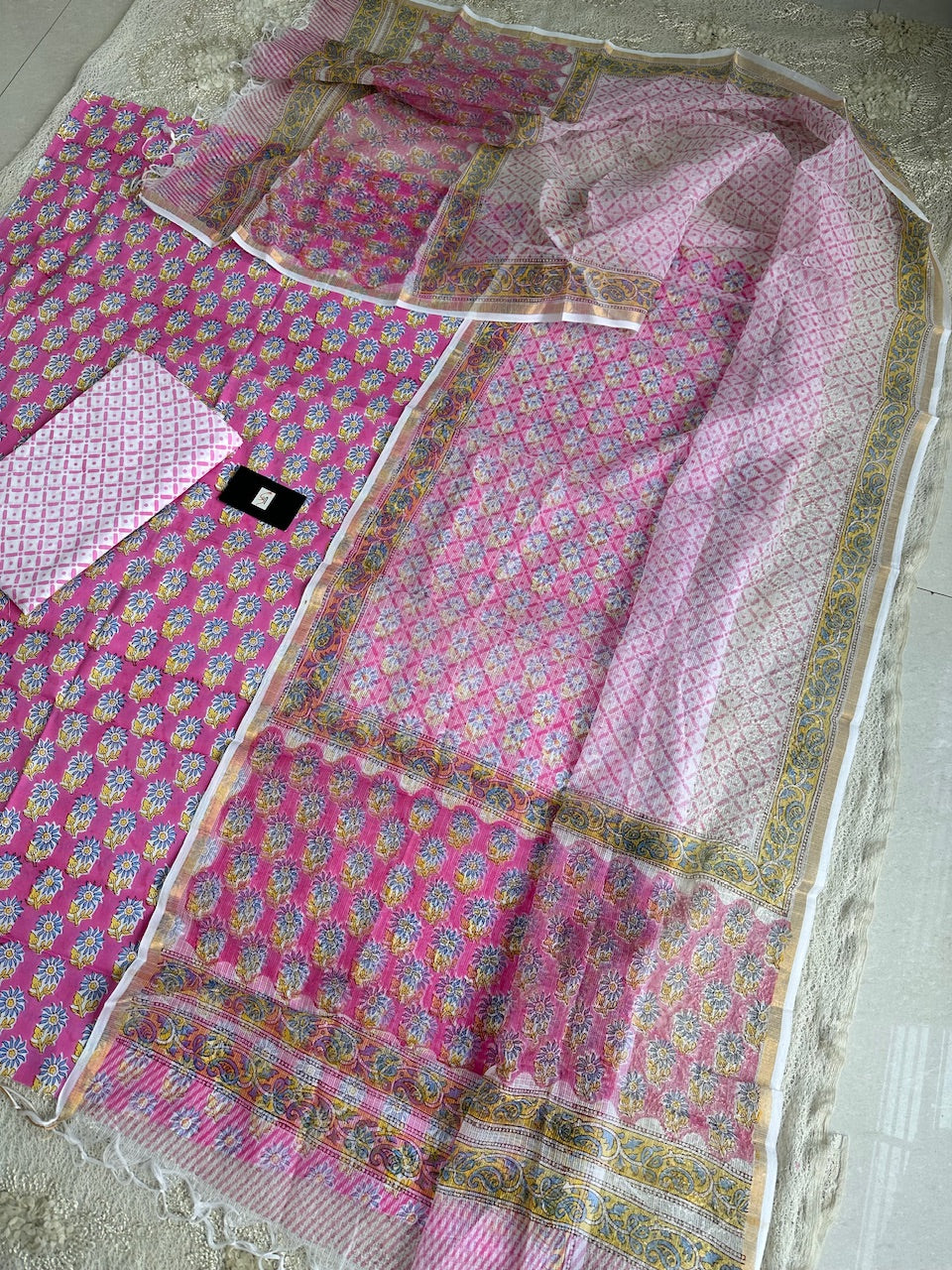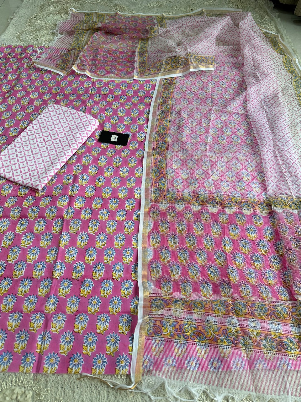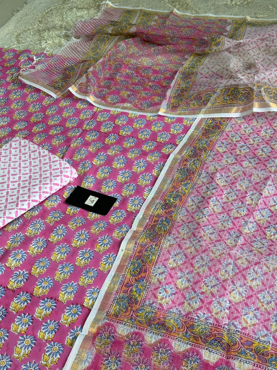 • Pure Handblockprint Premium Cotton Top and Bottom with Kota Cotton Doria Dupatta set