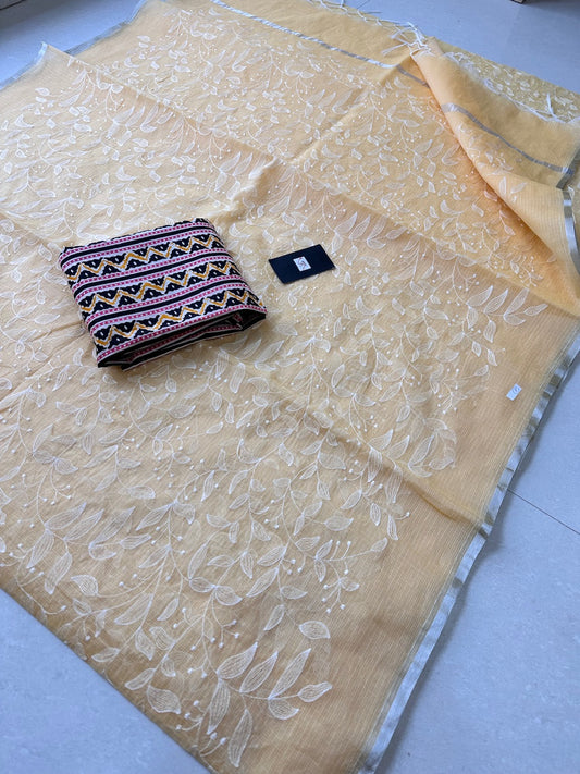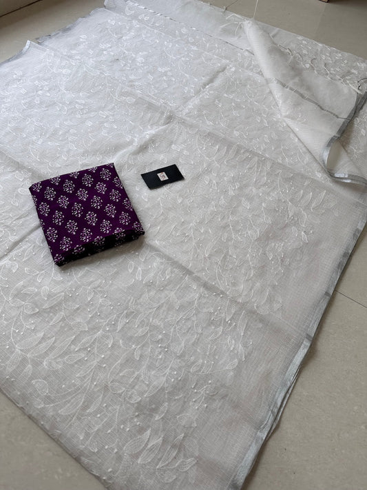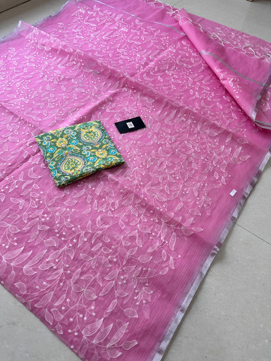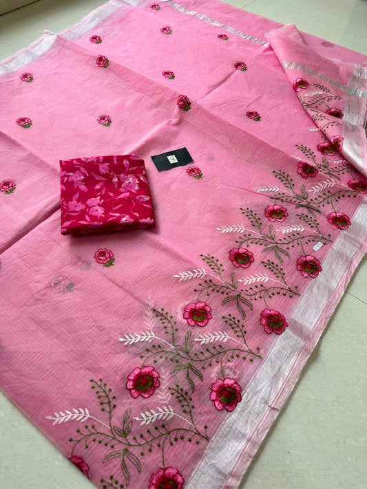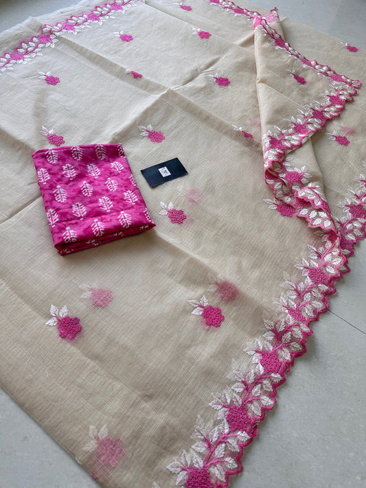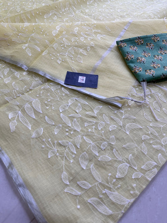 Sold outEmbroidered Kota Cotton Doria Saree