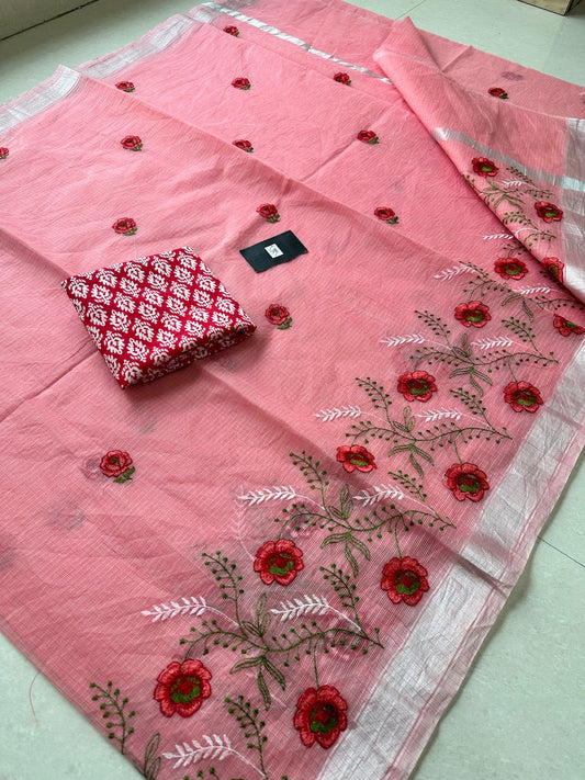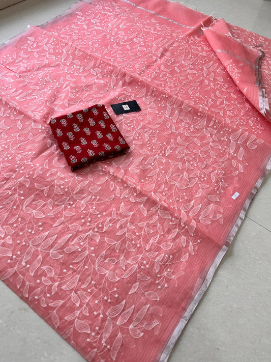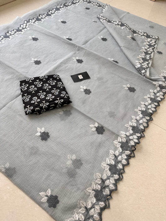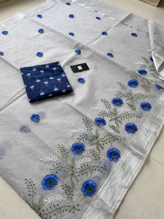 Embroidered Kota Cotton Doria Saree