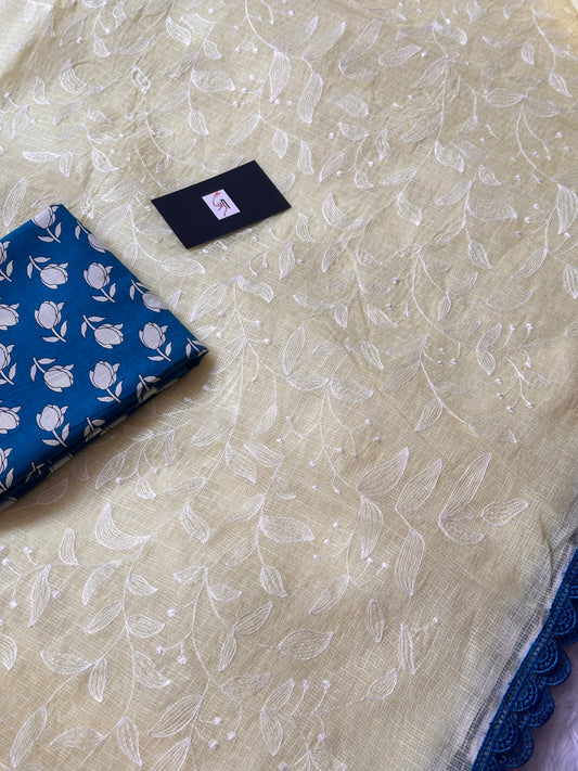 EMBROIDERED KOTA COTTON DORIA SAREE
