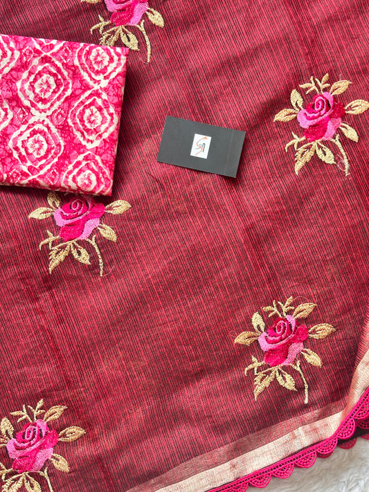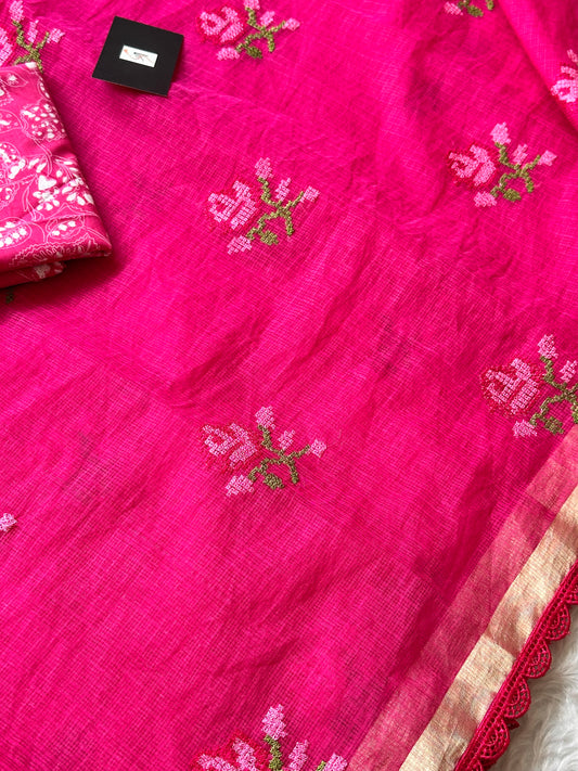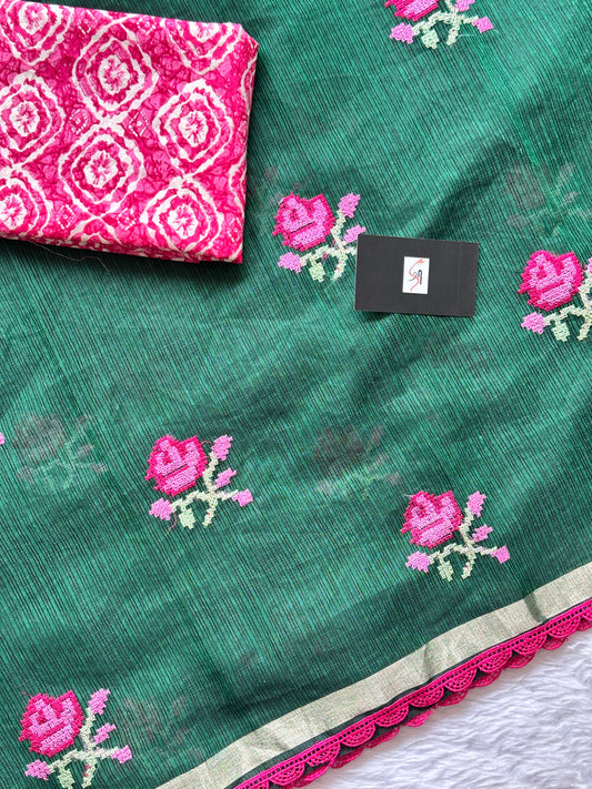Collection: EMBROIDERED KOTA COTTON DORIA SAREE