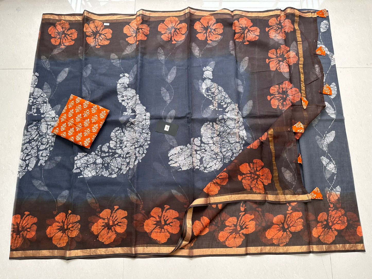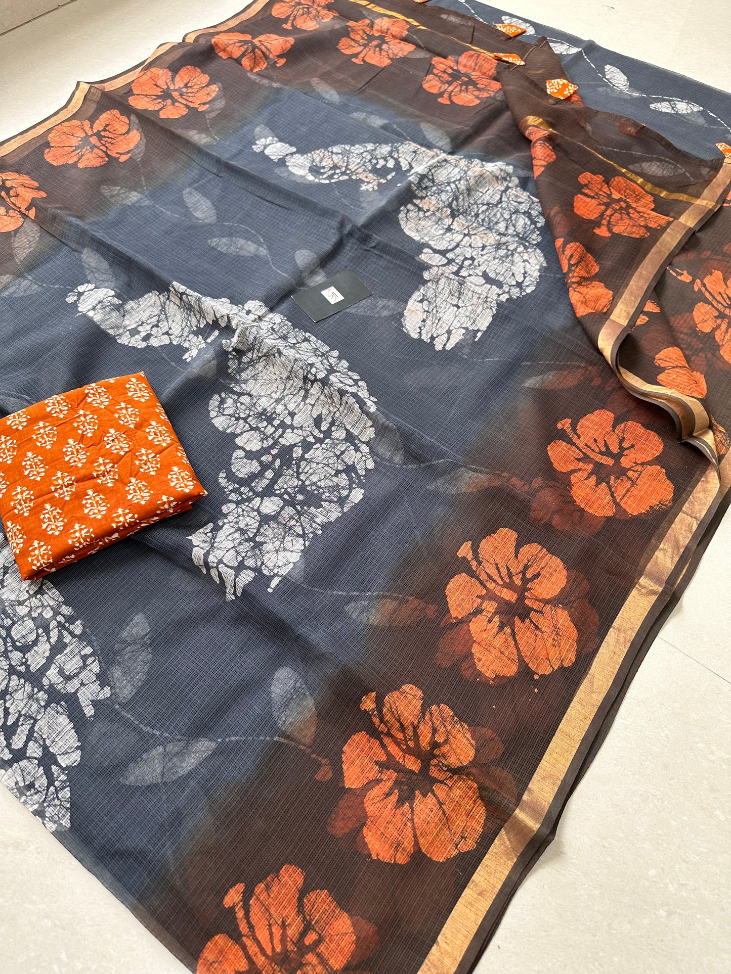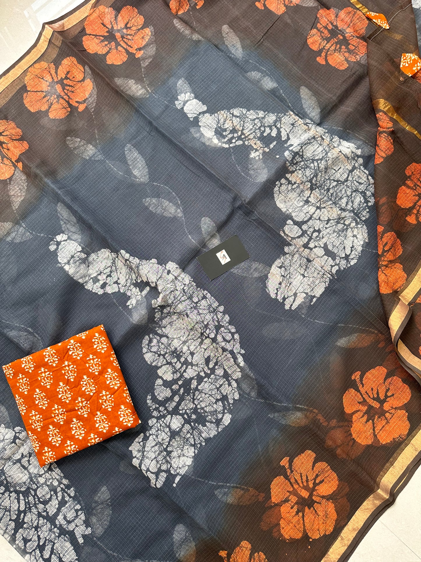 Pure HandBlock Printed Kota Cotton Doria Saree