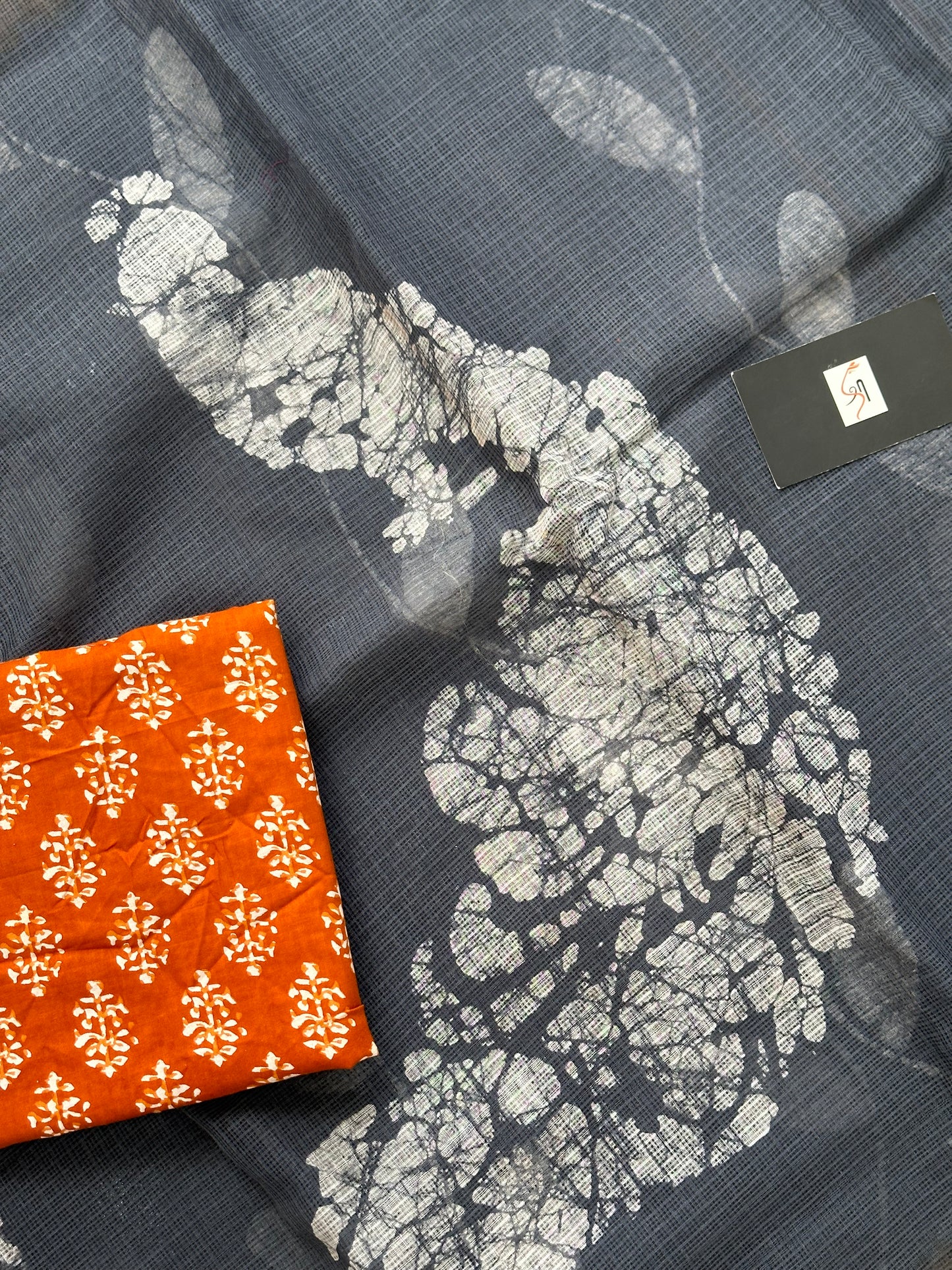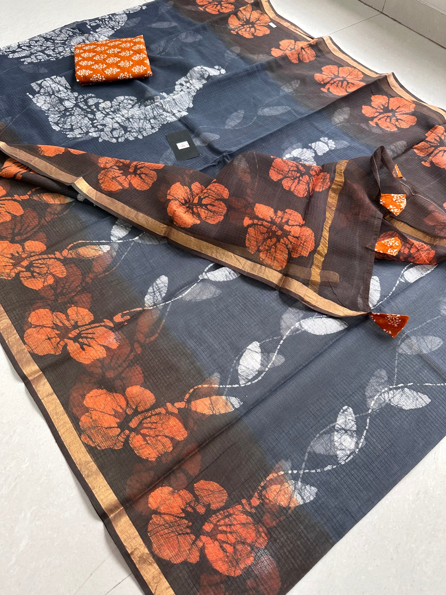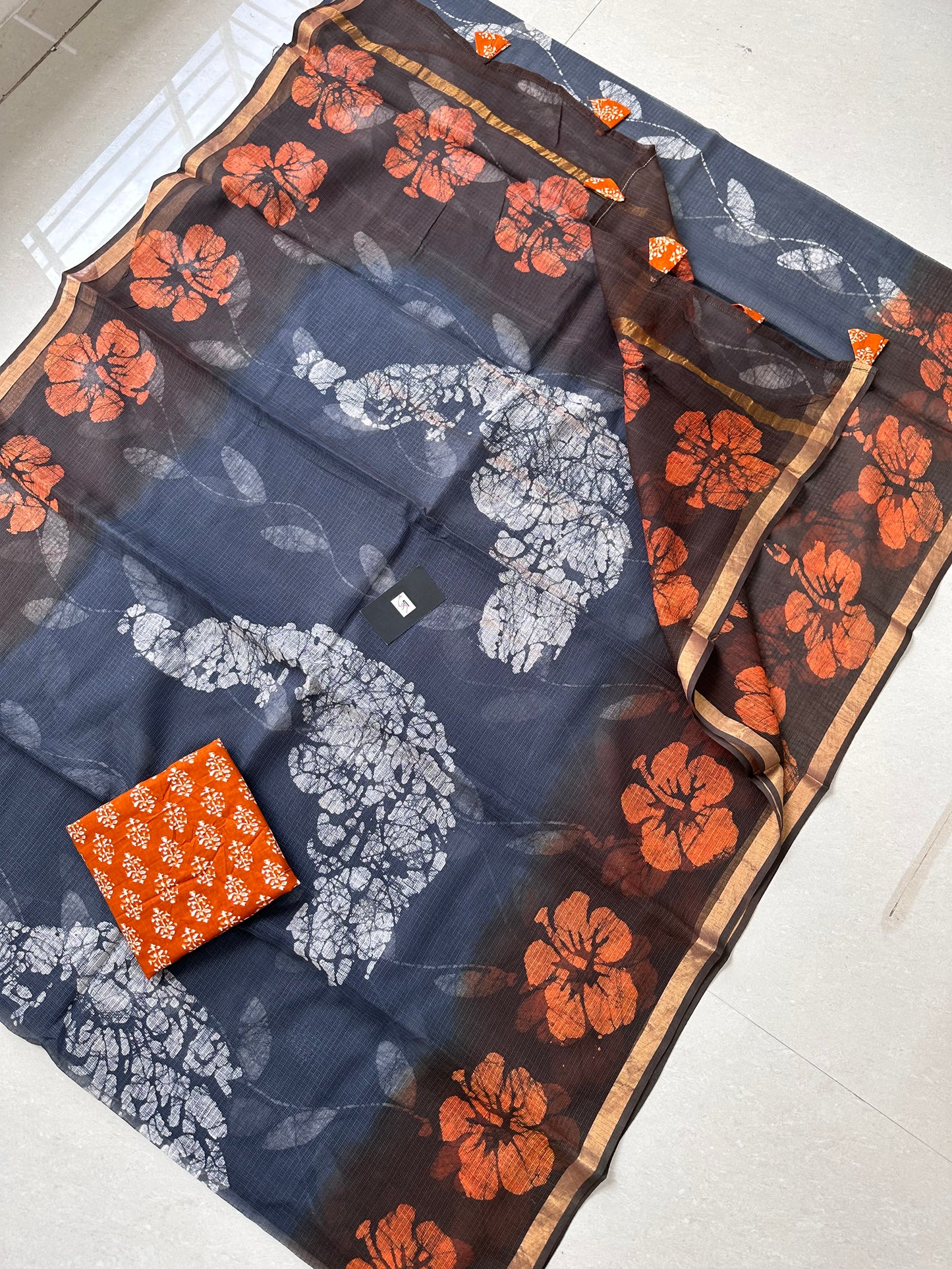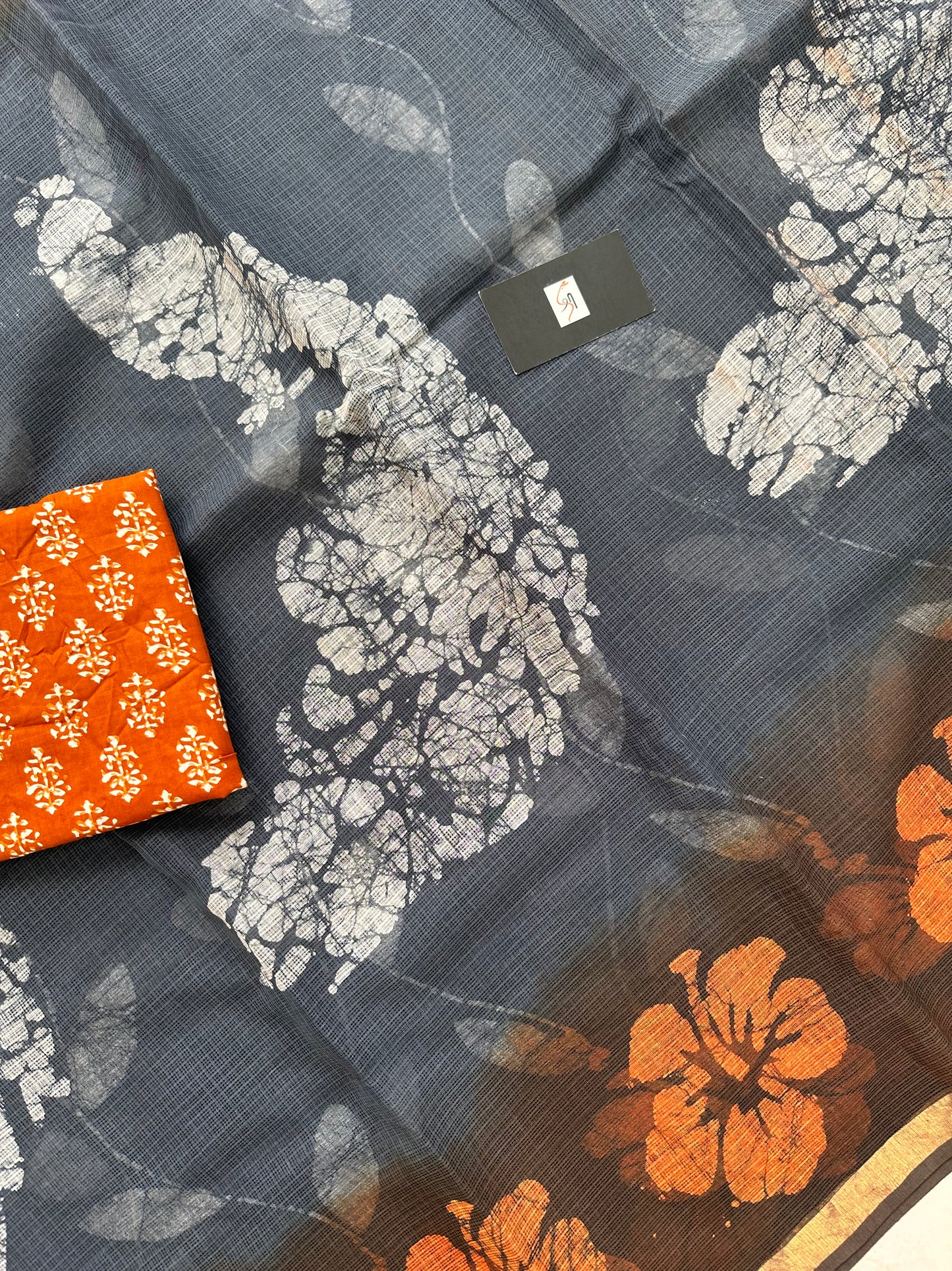 Pure HandBlock Printed Kota Cotton Doria Saree