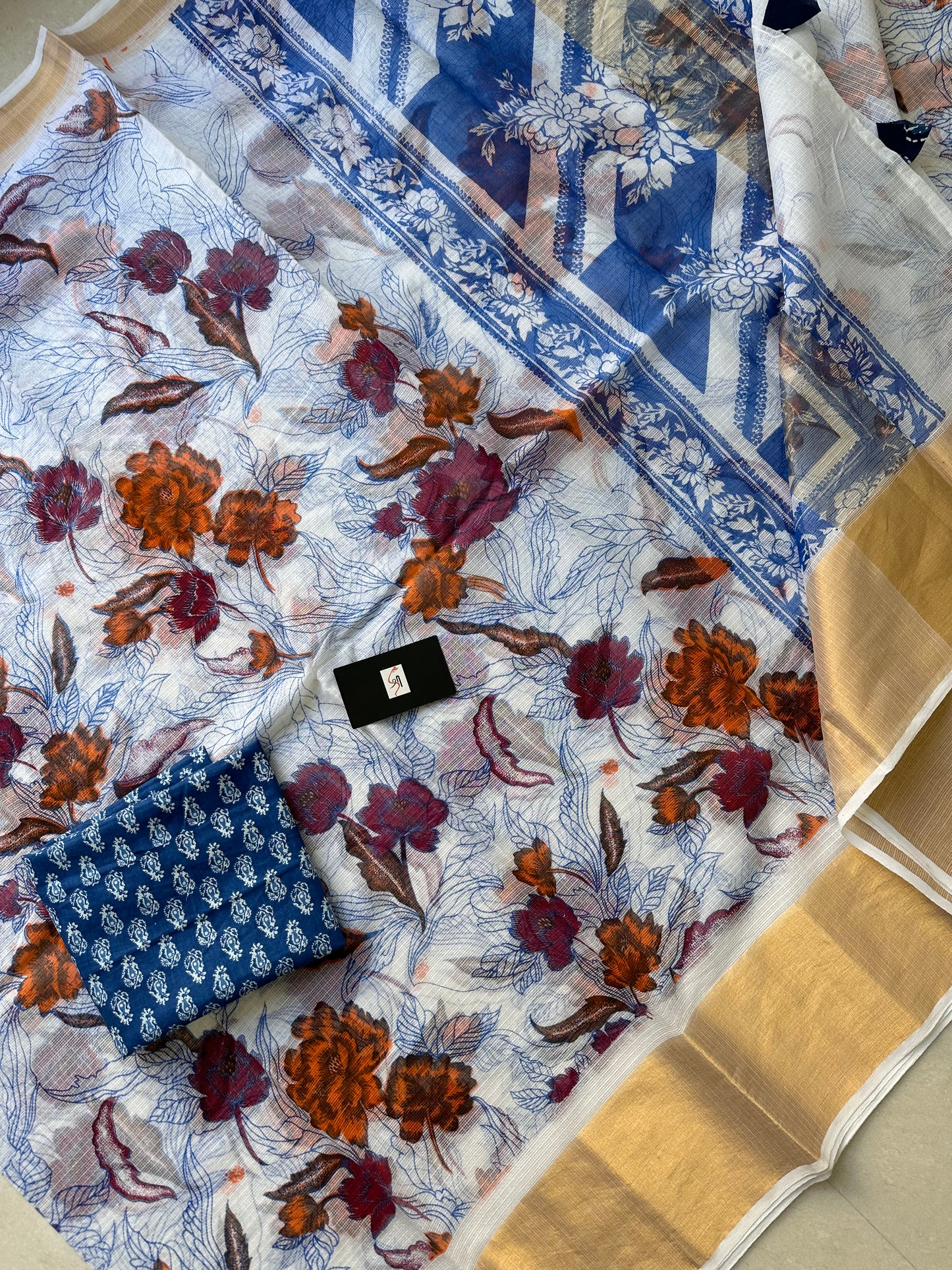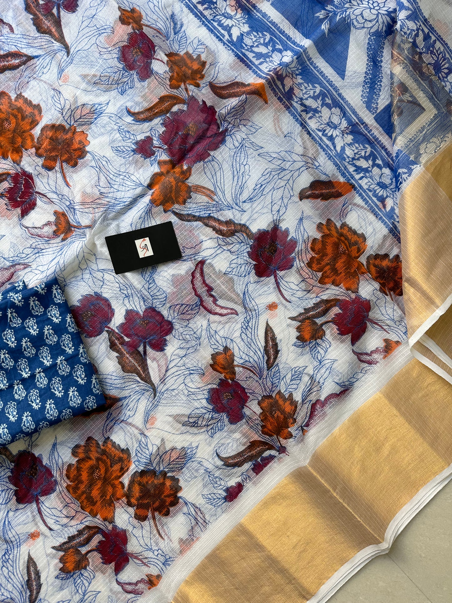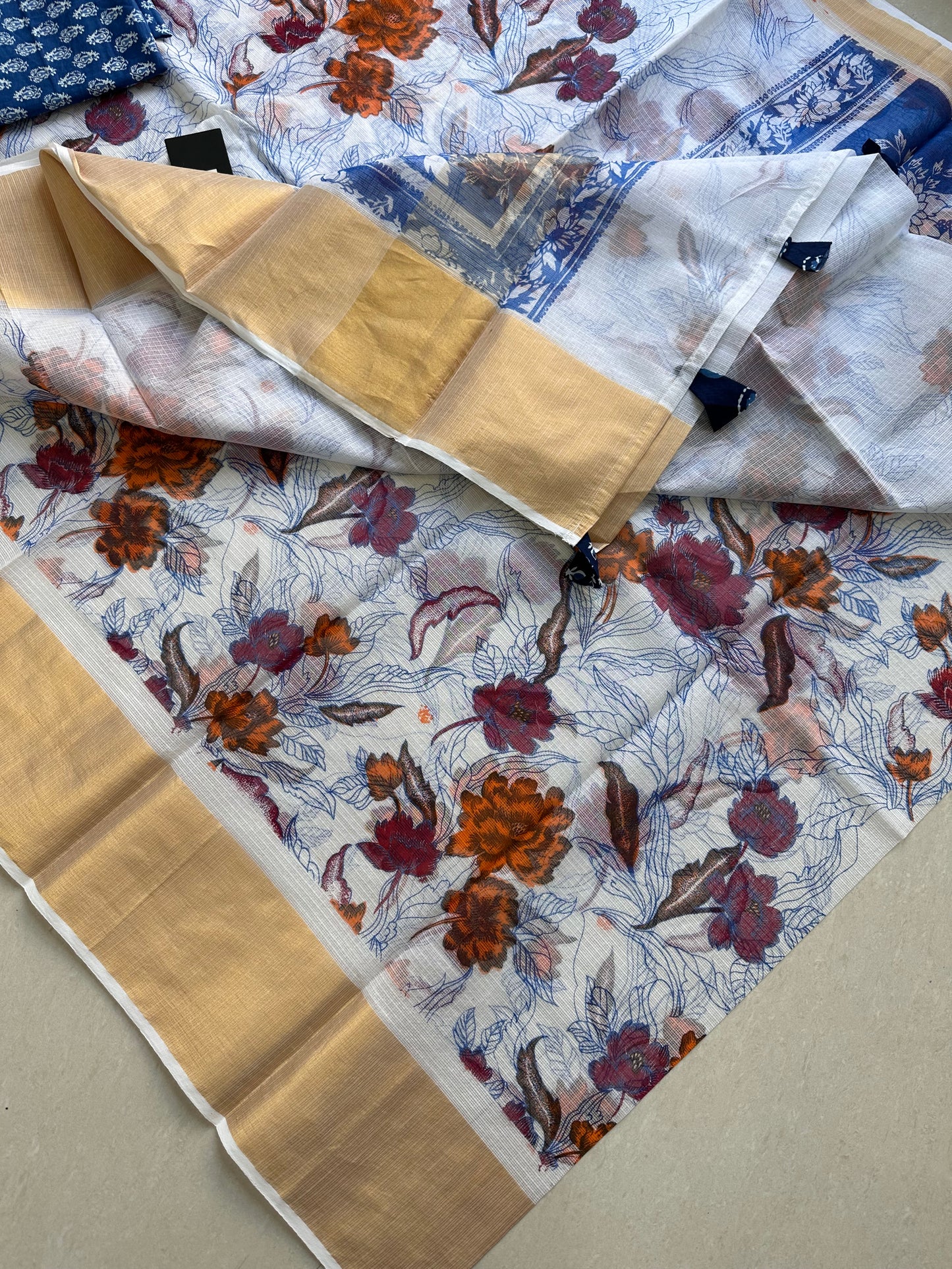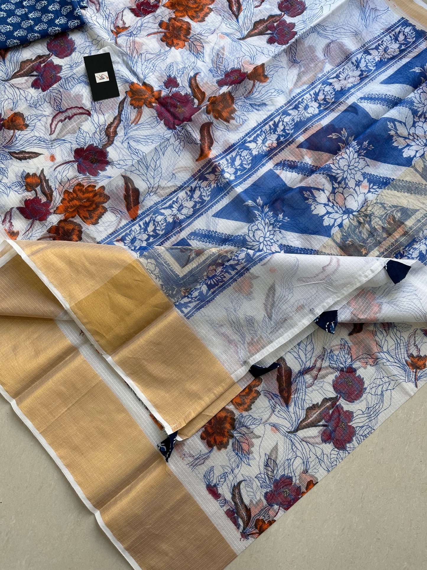 Pure HandBlock Printed Kota Cotton Doria Saree