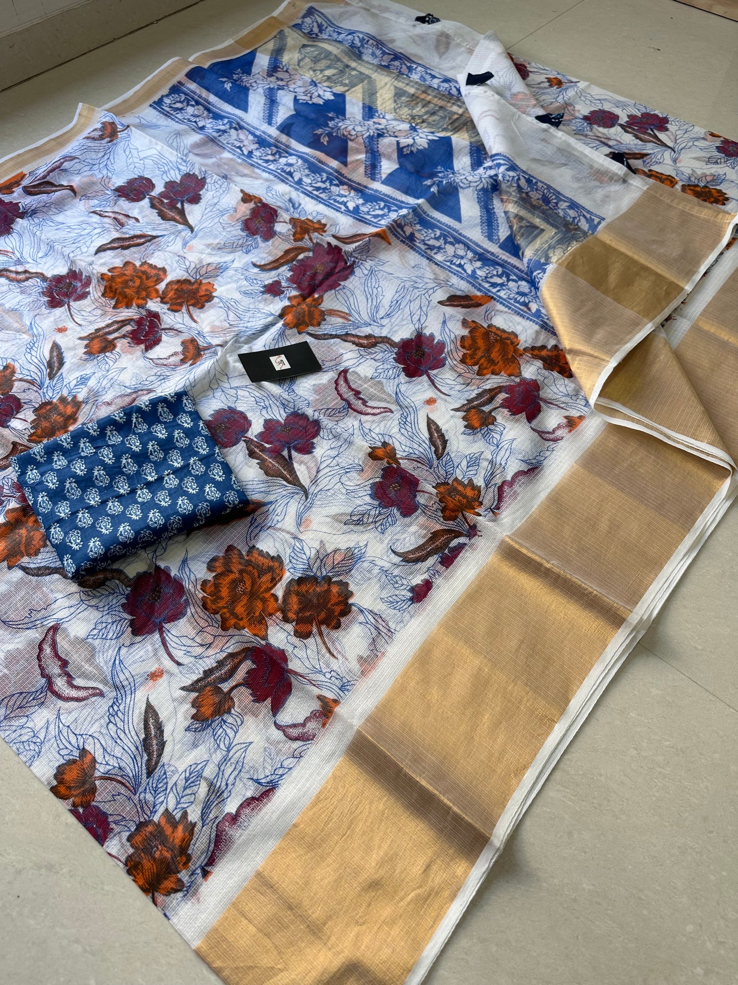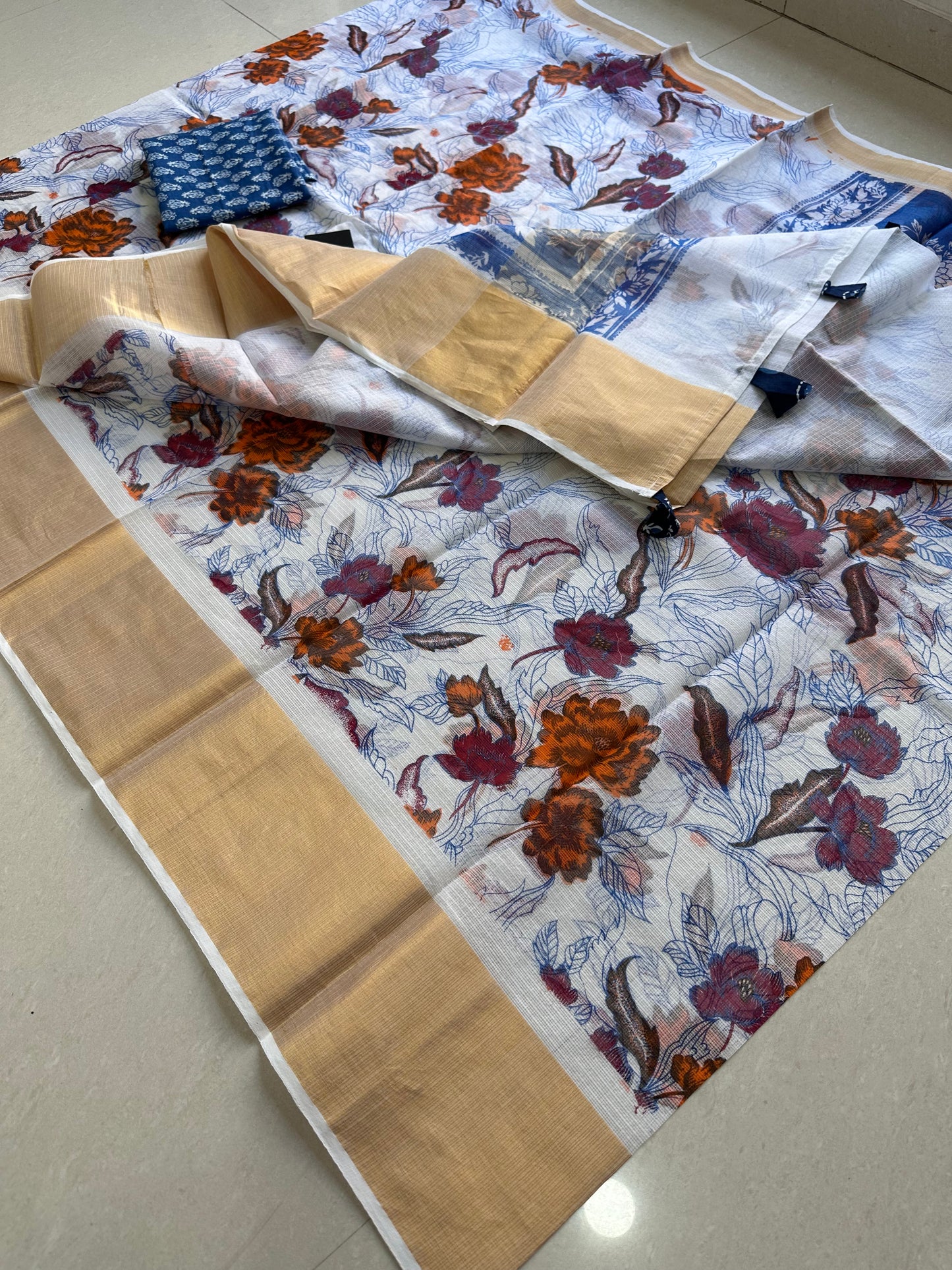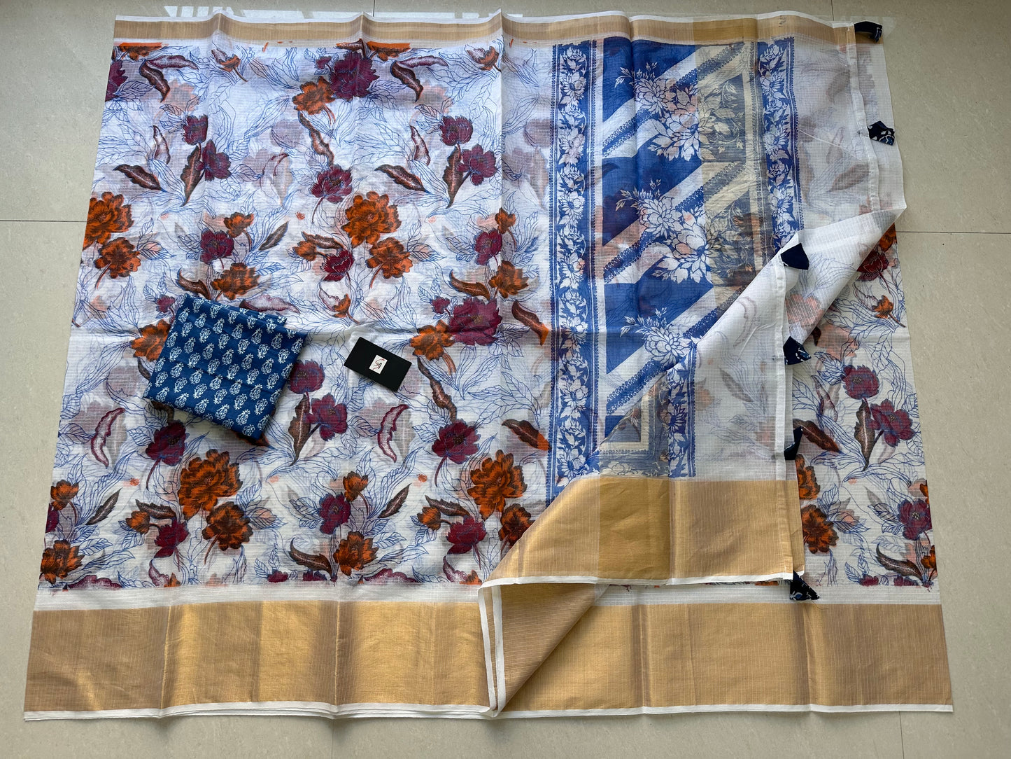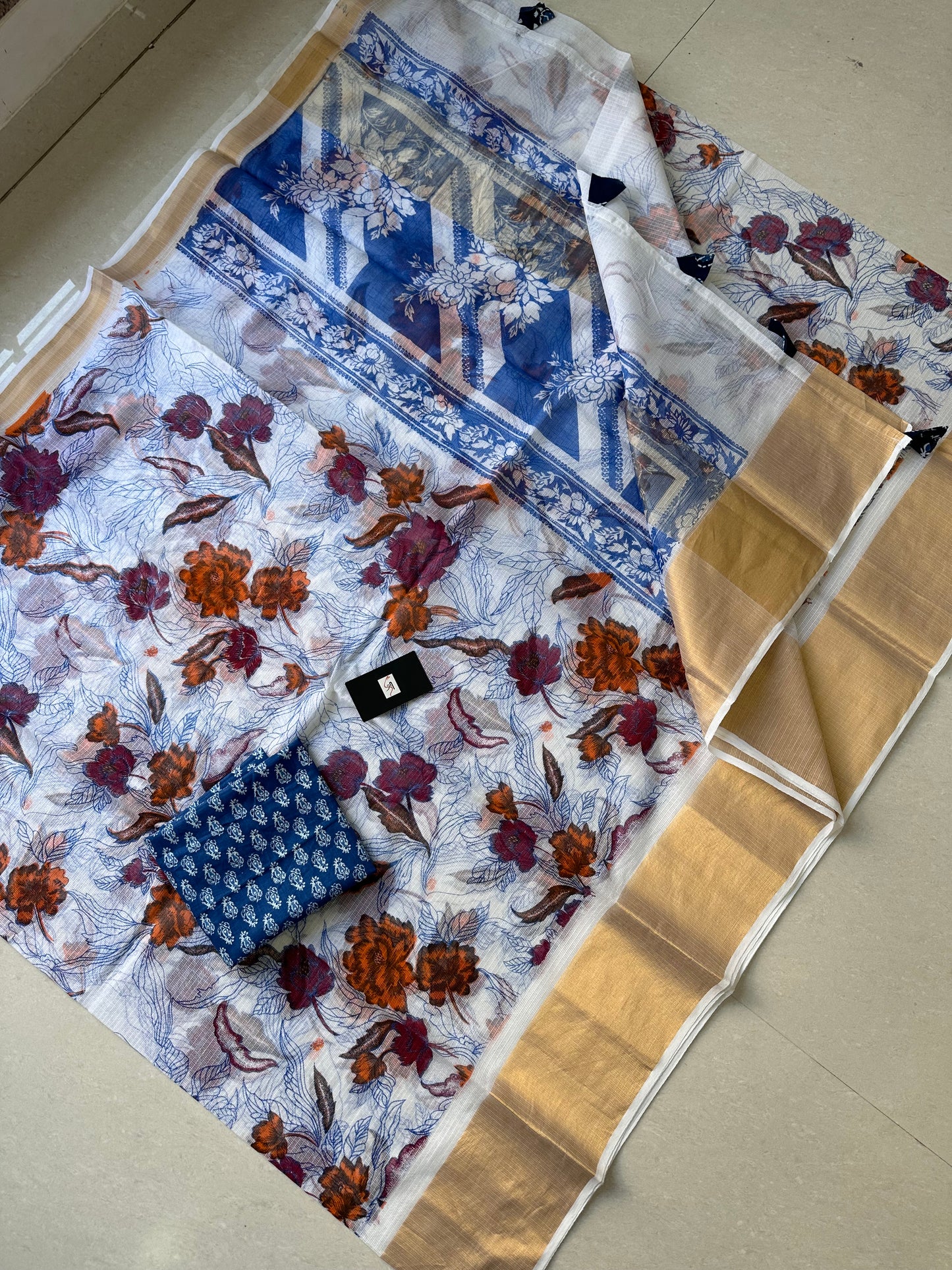 Pure HandBlock Printed Kota Cotton Doria Saree