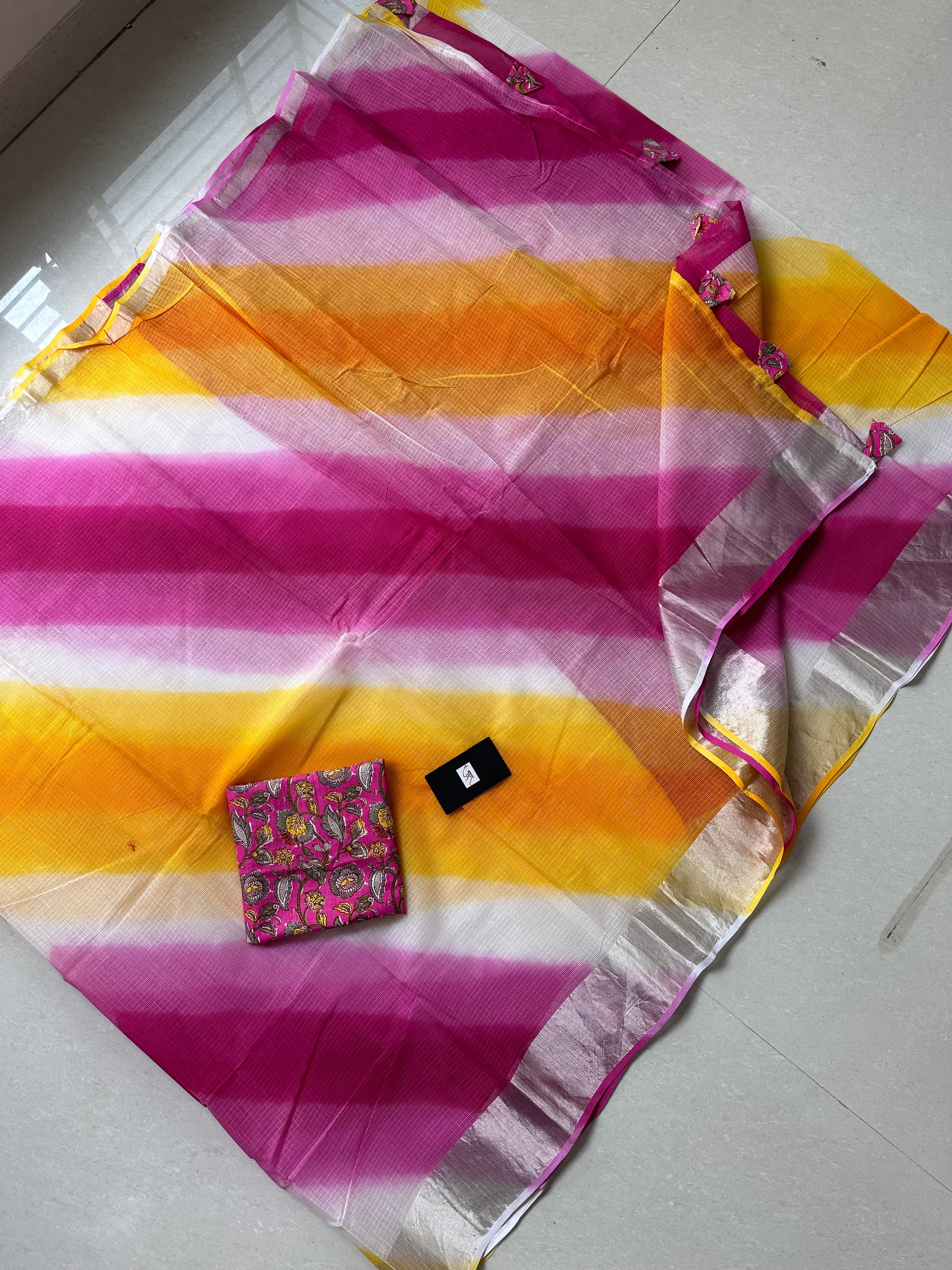 Pure HandBlock Printed Kota Cotton Doria Saree