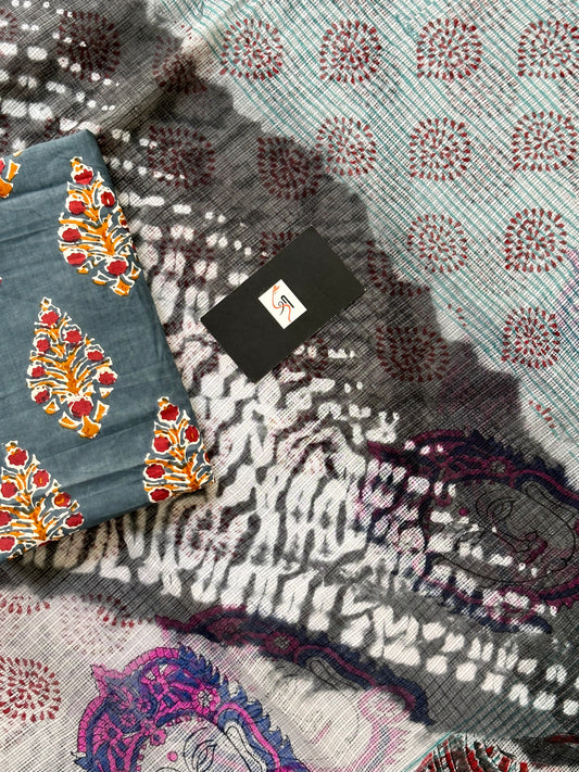 Pure HandBlock Printed Kota Cotton Doria Saree