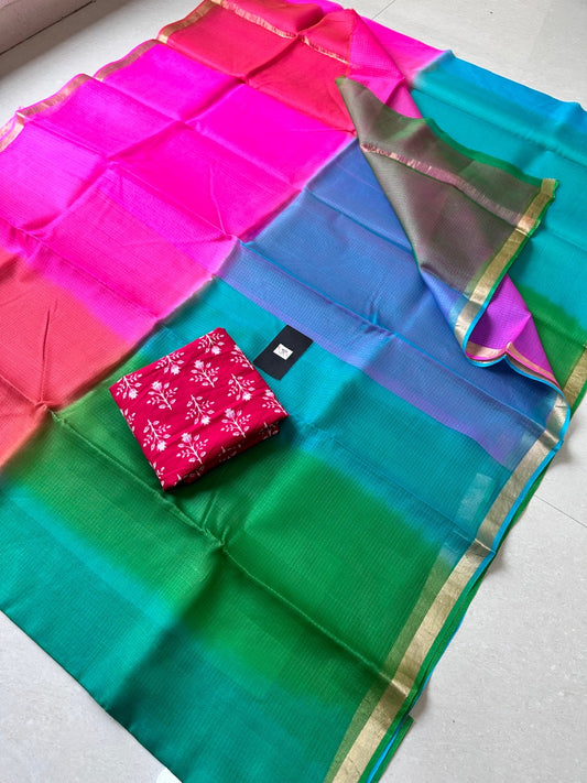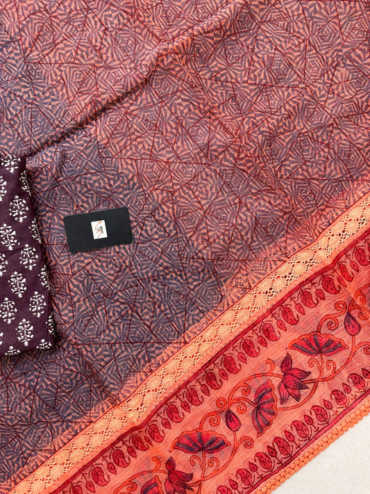 Pure HandBlock Printed Kota Cotton Doria Saree
