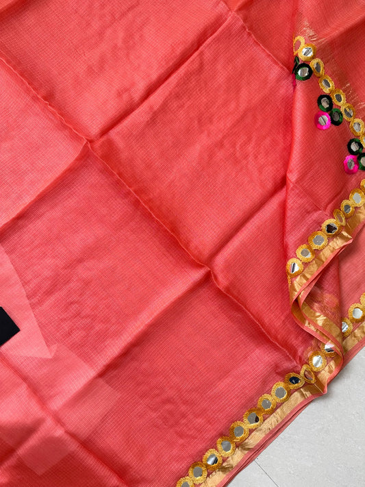 Pure Jaipuri Gota Patti N Lampi Lace Crafted Kota Silk Saree