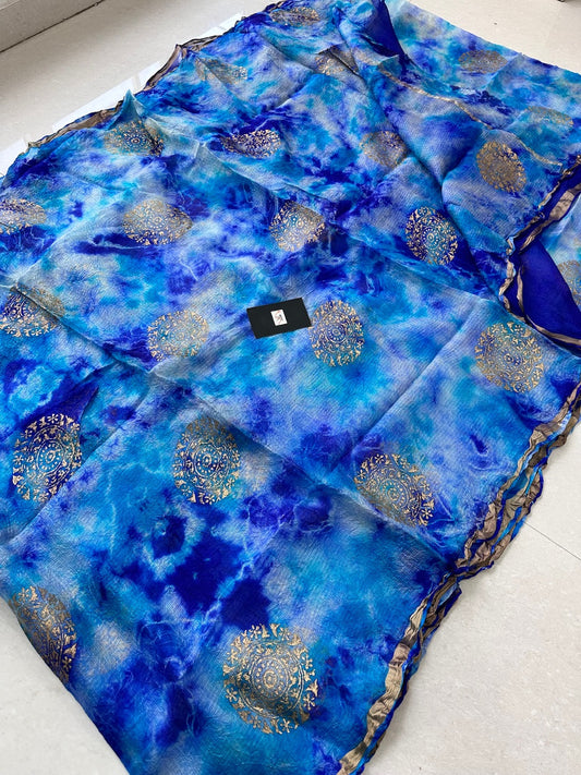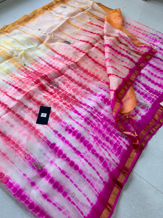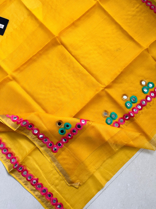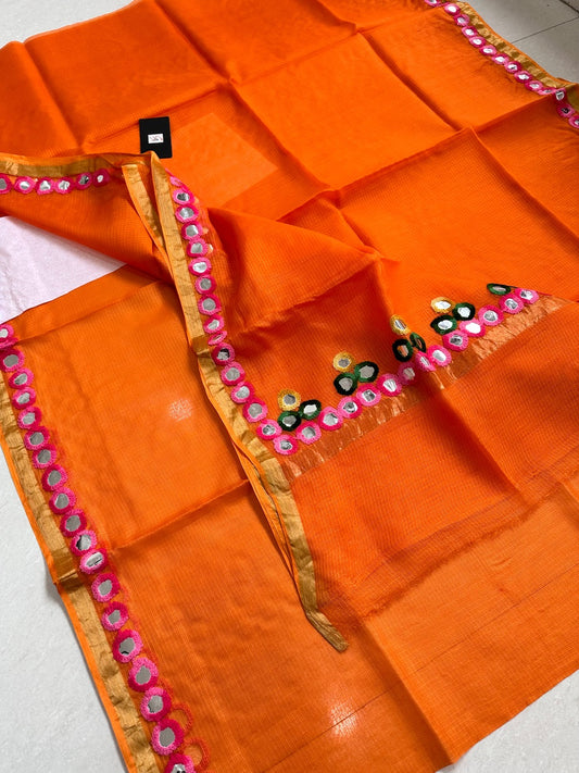 Pure Foil Mirror Embroidered Kota Silk Saree