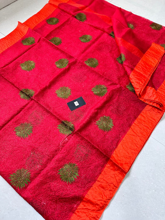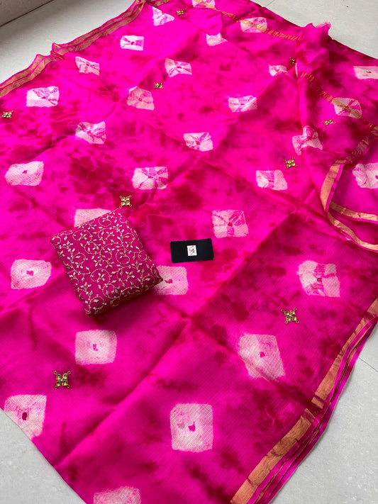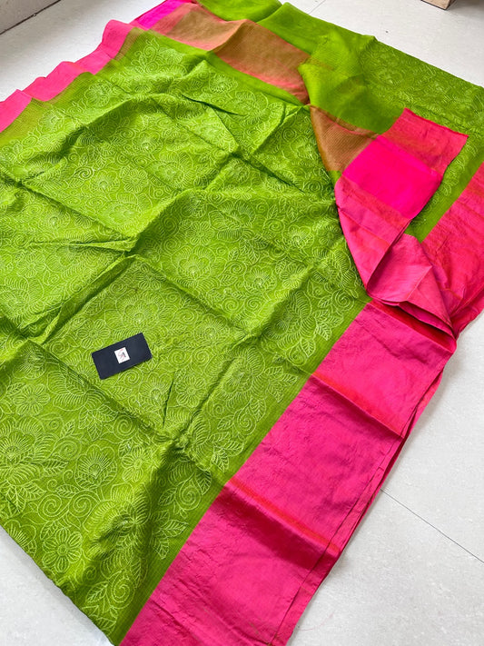 Pure Jaipuri Danka Work Crafted Kota Silk Saree