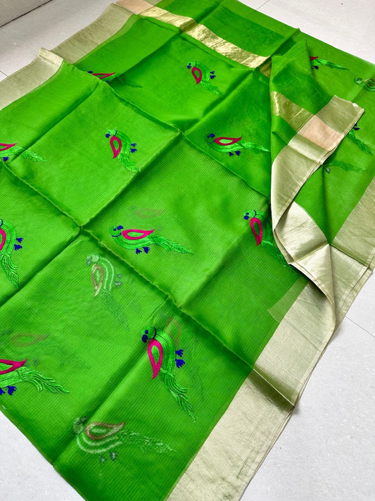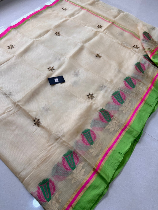 Pure Pitta N Thread Embroidered Kota Silk Saree