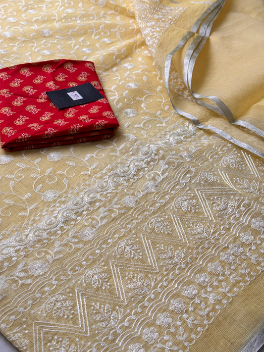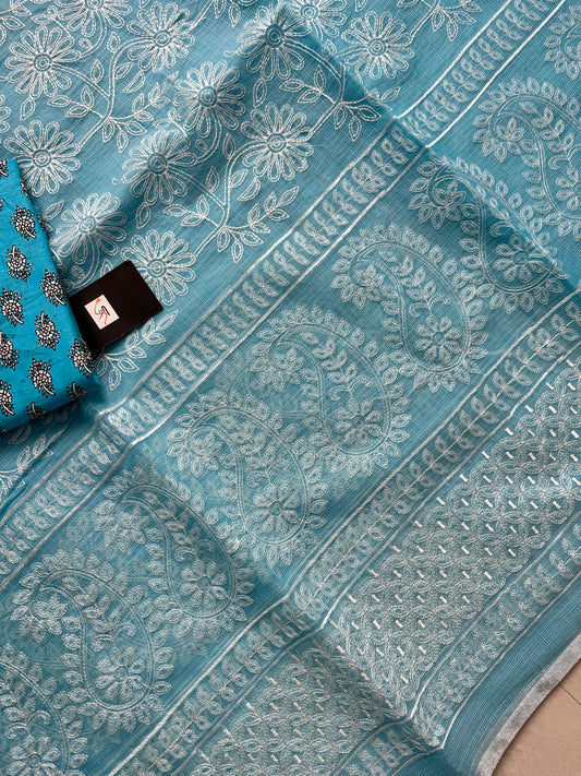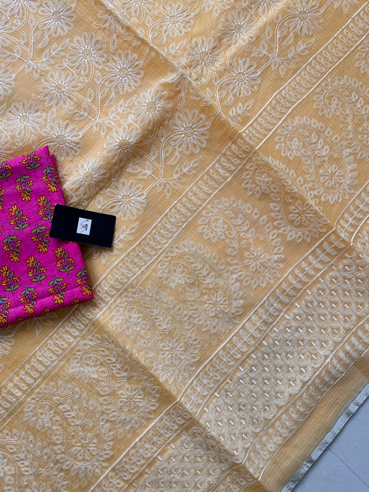 EMBROIDERED KOTA COTTON DORIA SAREE