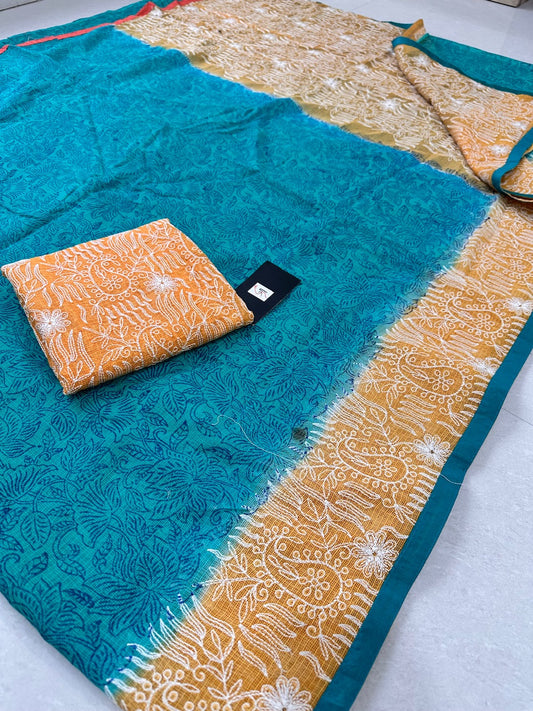 PURE EMBROIDERED KOTA COTTON DORIA SAREE
