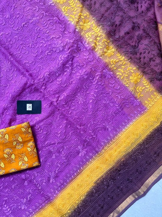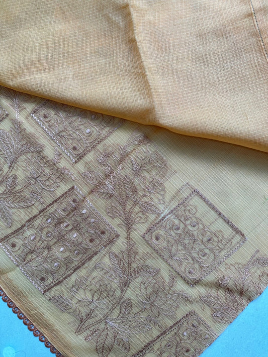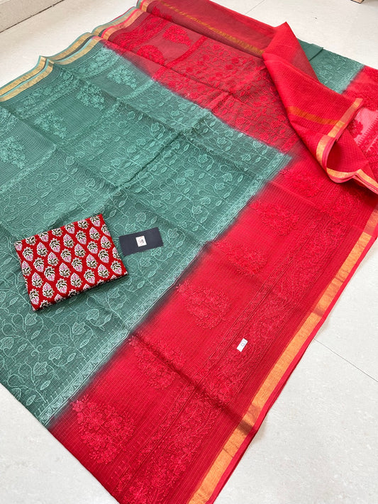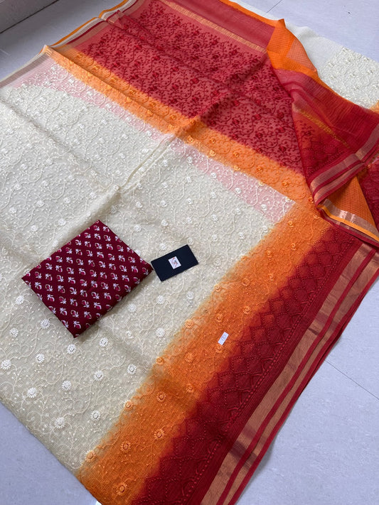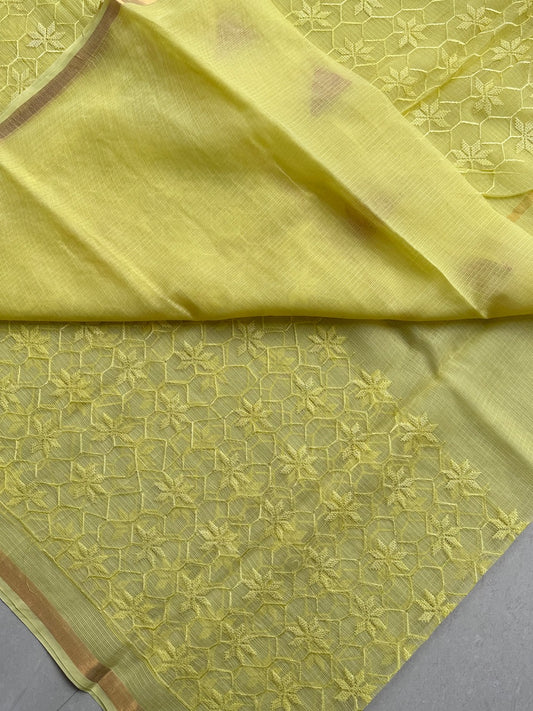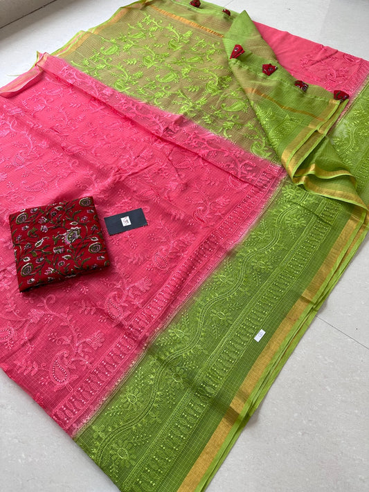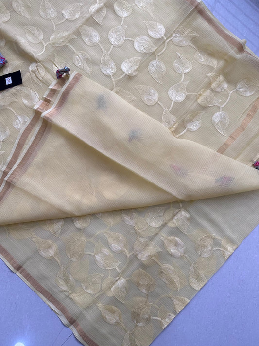 Pure Embroidered Kota Cotton Tissue Doria Saree