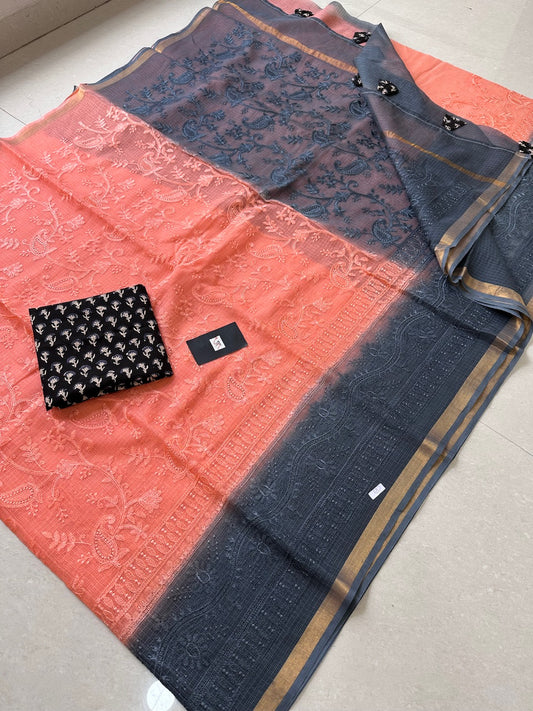 సేకరణ: PURE EMBROIDERED KOTA COTTON DORIA SAREE
