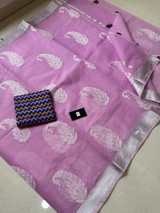Luckhnowi Embroidered Kota Cotton Doria Saree