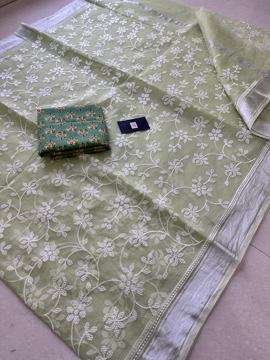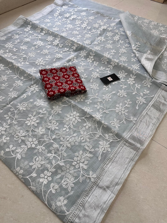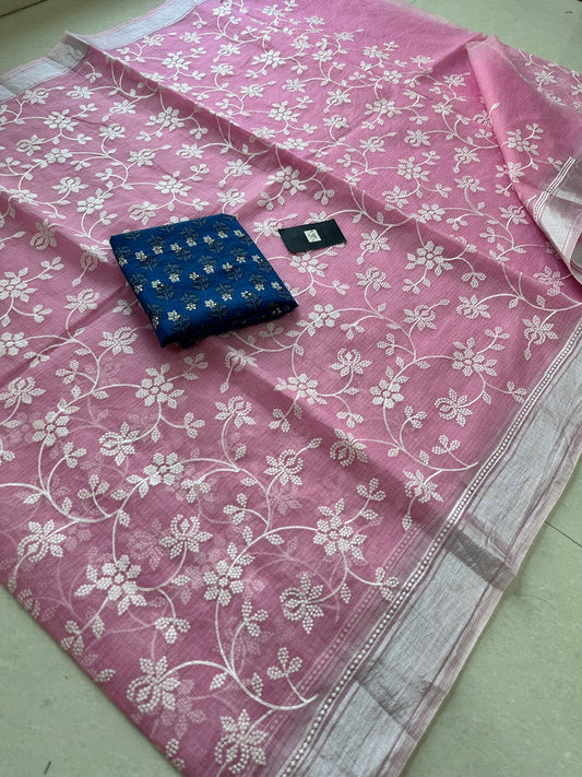Jaipuri Pitta Work Embroidered Kota Cotton Lenin Saree