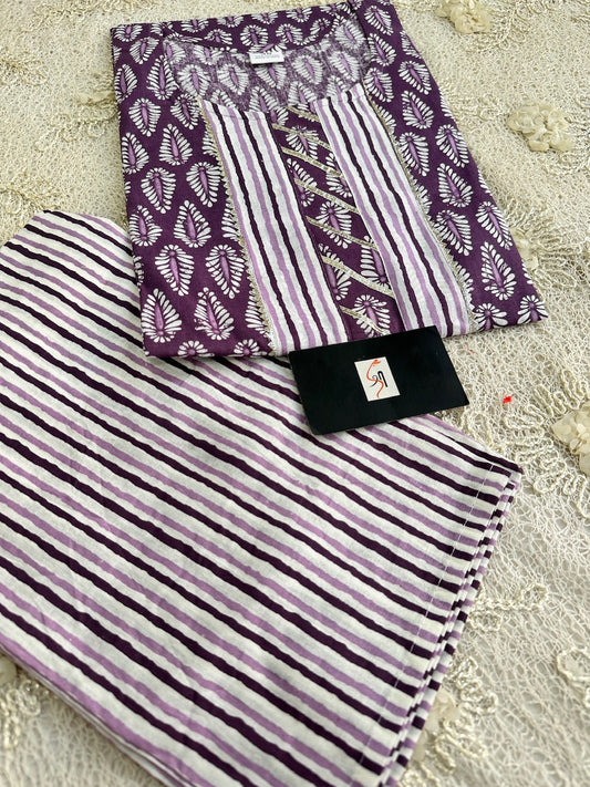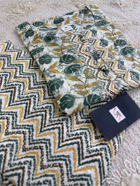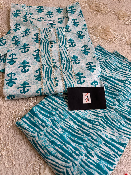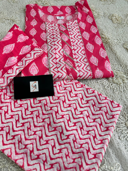 Pure HandBlock Printed Cotton Kurti N Pant Set