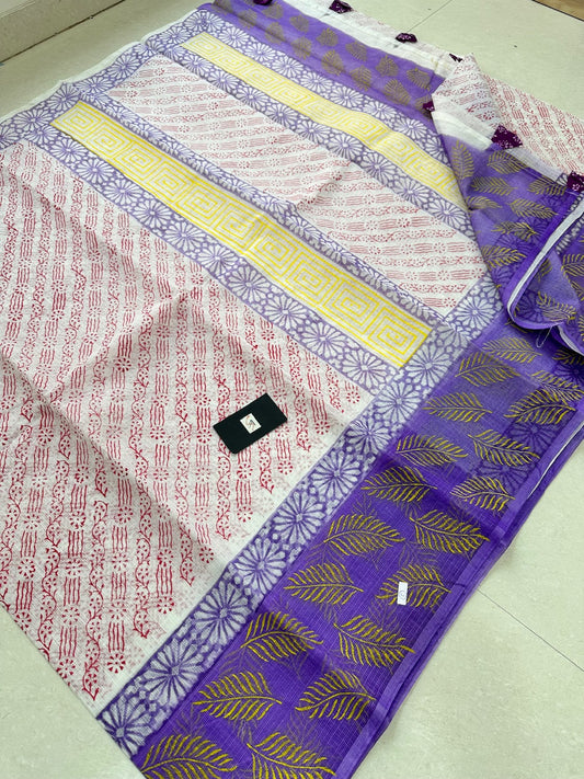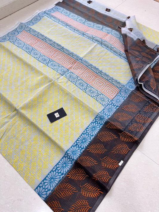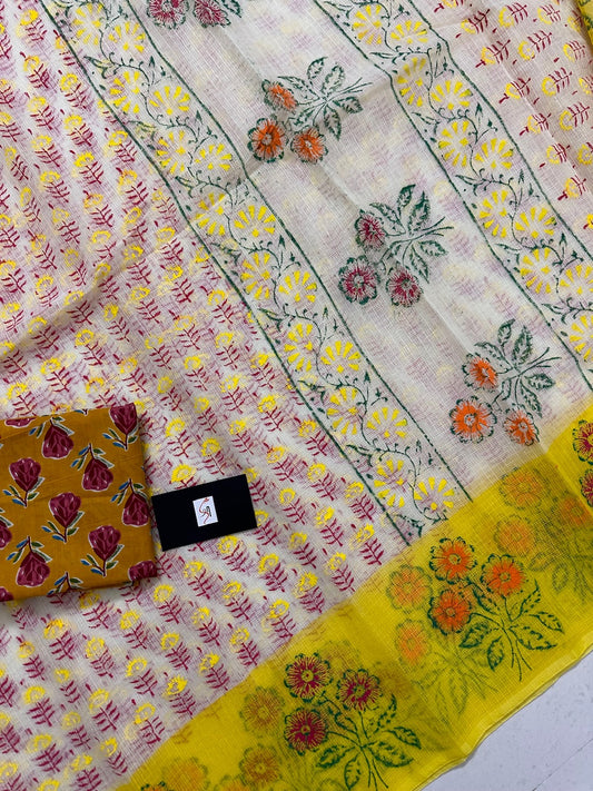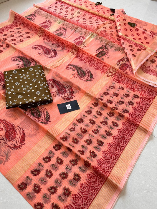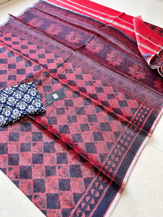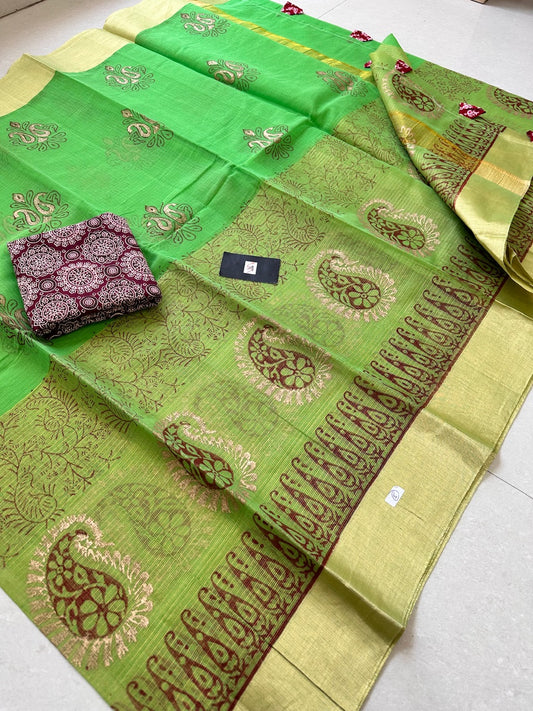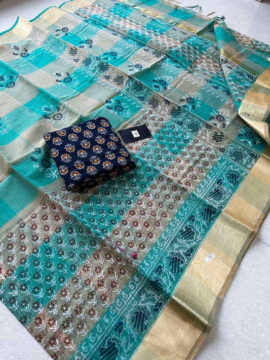 HandBlock Printed Kota Cotton Doria Tissue Saree