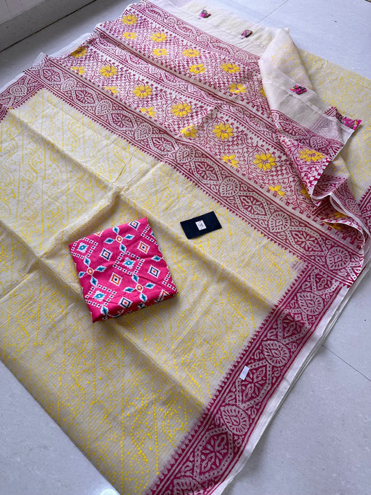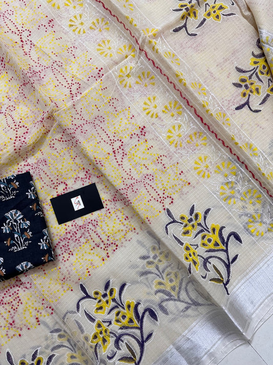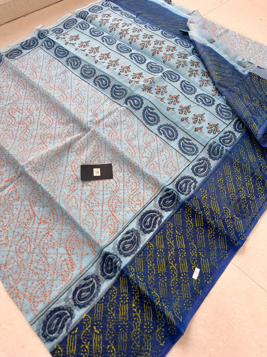 HandBlock Printed Kota Cotton Half Doria Half Tissue Saree