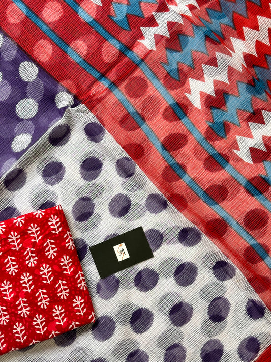 Pure HandBlock Printed Kota Cotton Doria Saree