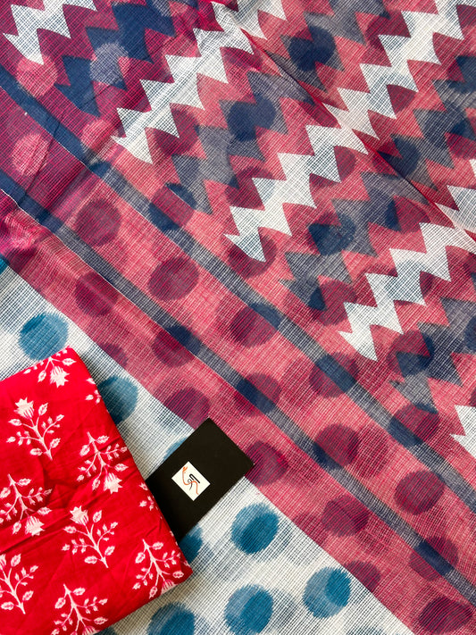 HandBlock Printed Pure Kota Cotton Doira Saree