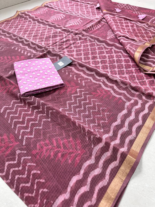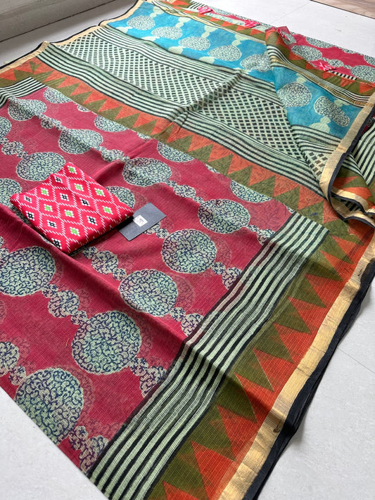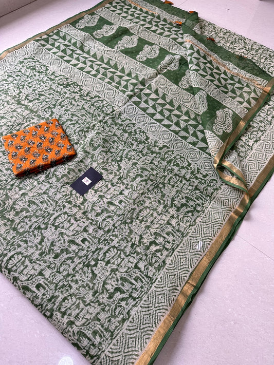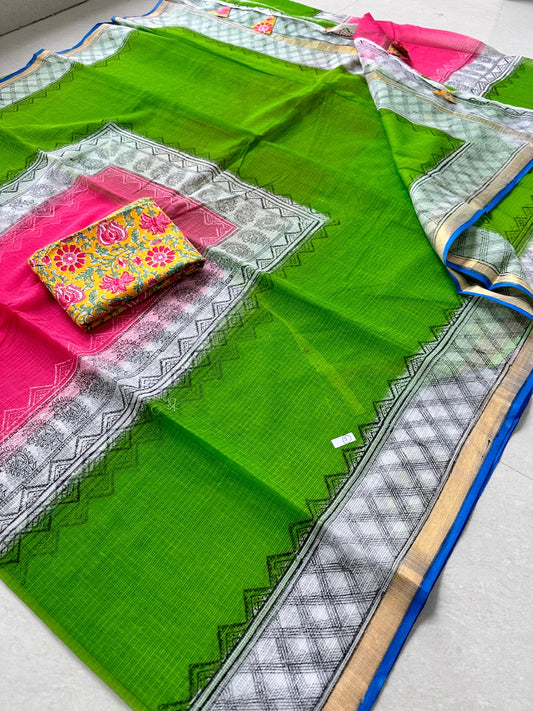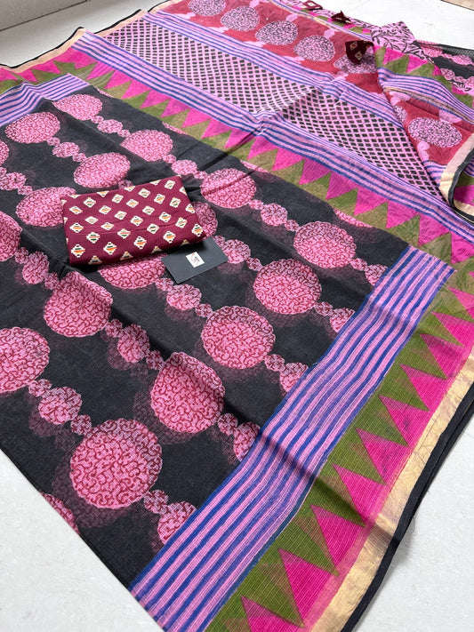 Pure HandBlock Printed Kota Cotton Doria Saree