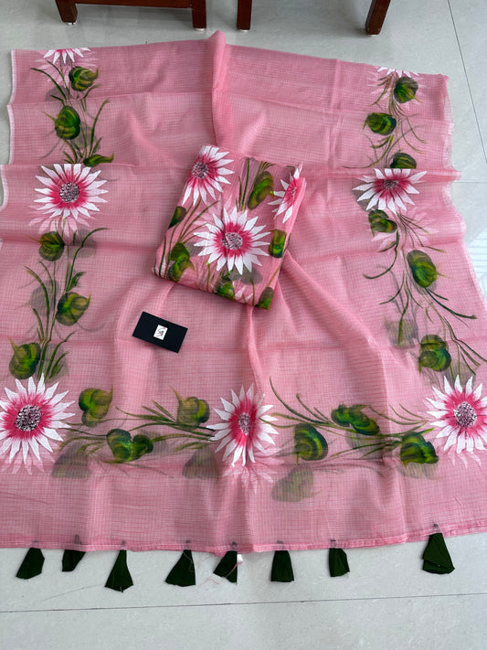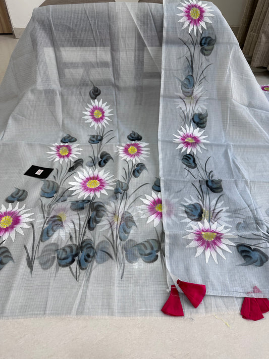 Hand Painted Kota Doria Cotton Top n Dupatta
