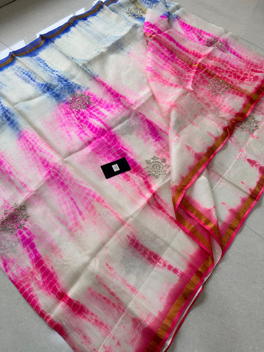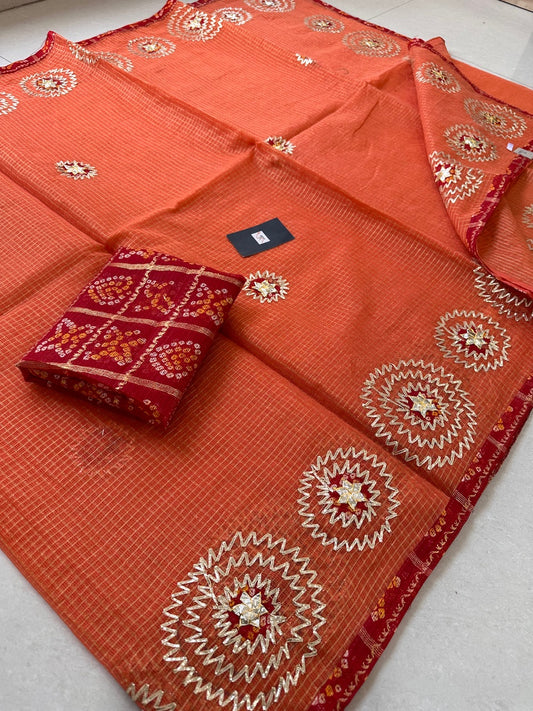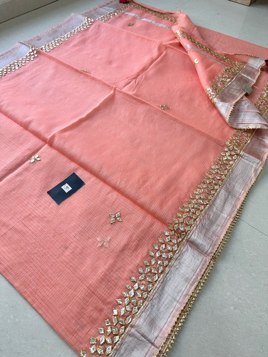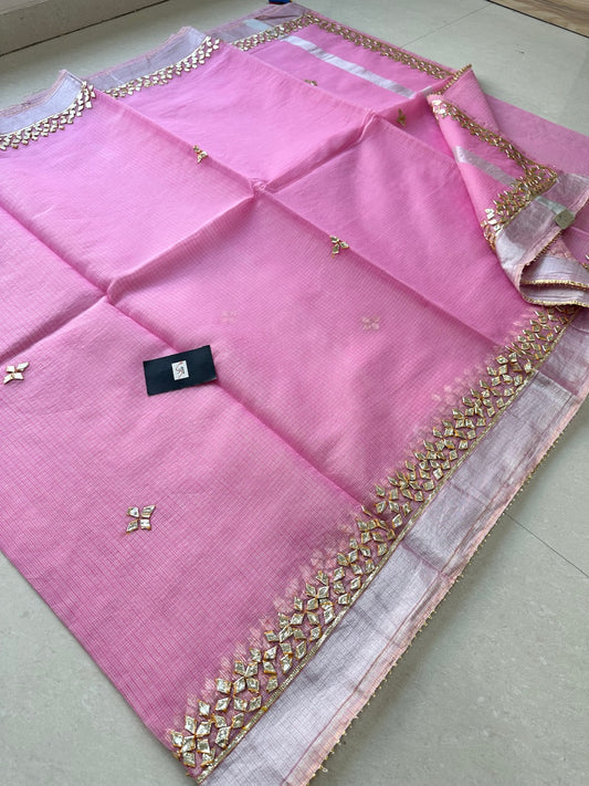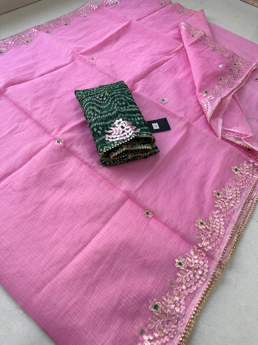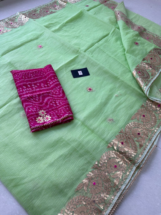 Jaipuri Gota Patti Embroidered Kota Tissue Cotton Doria Saree