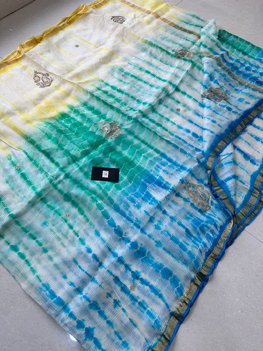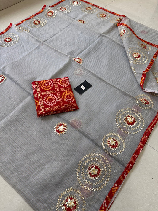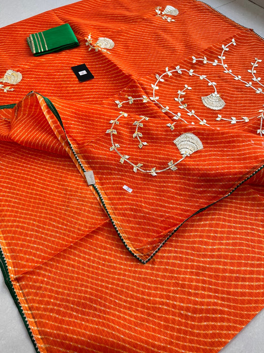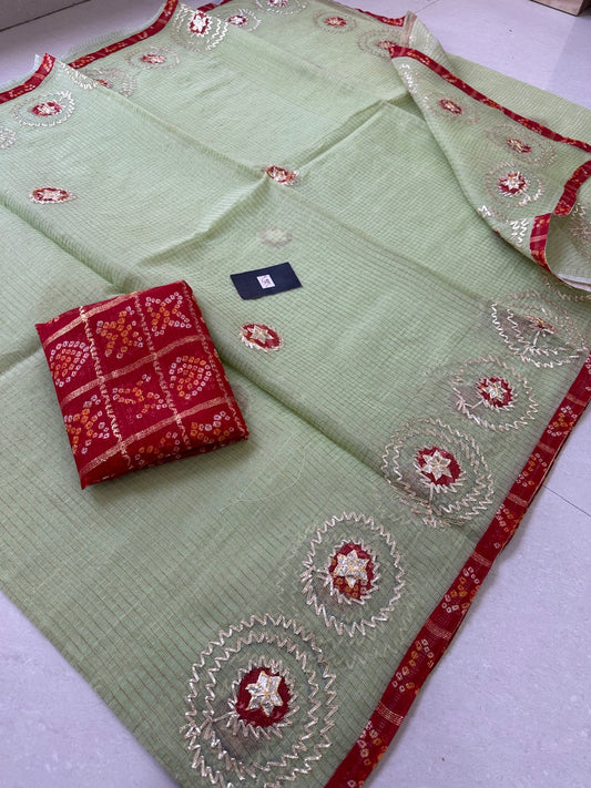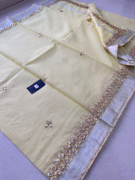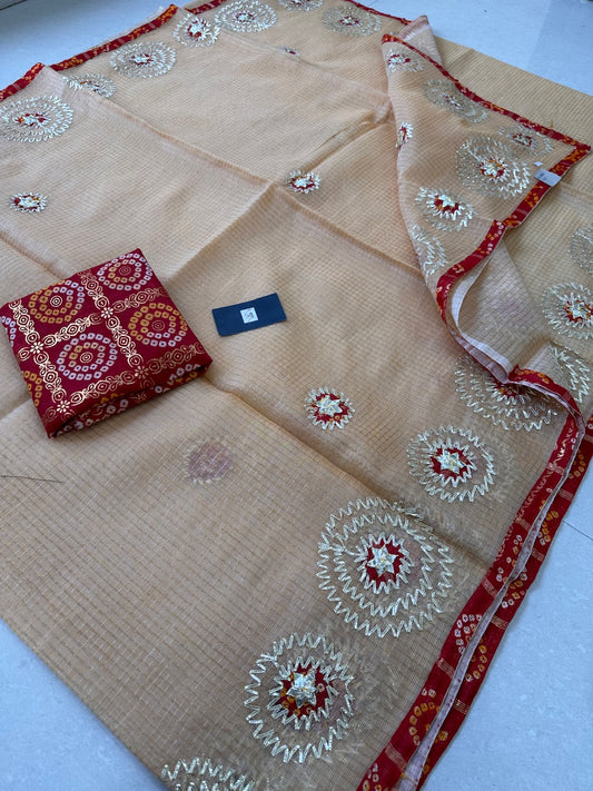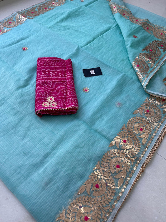 Jaipuri Gota Patti Embroidered Kota Cotton Tissue Doria Saree