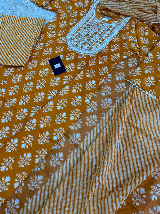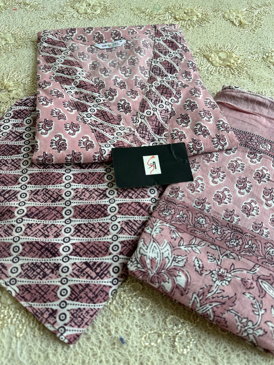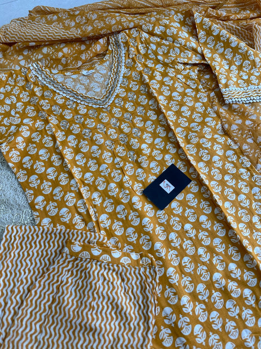 Pure Premium HandBlock Printed Cotton Kurta N Pant With Dupatta