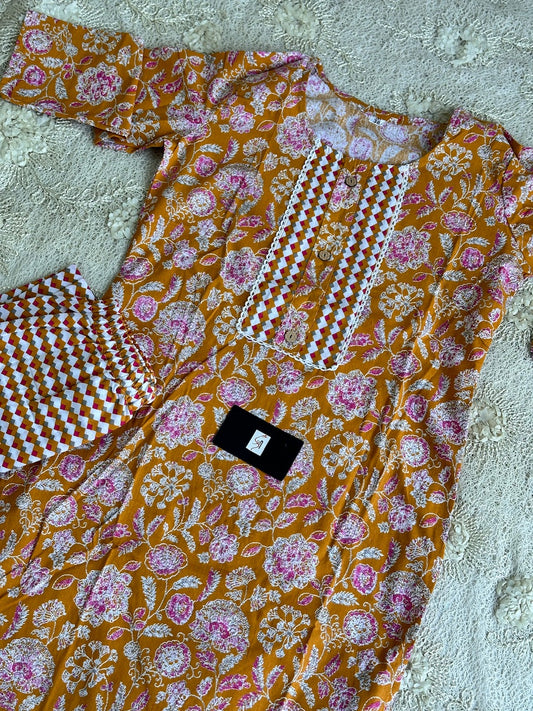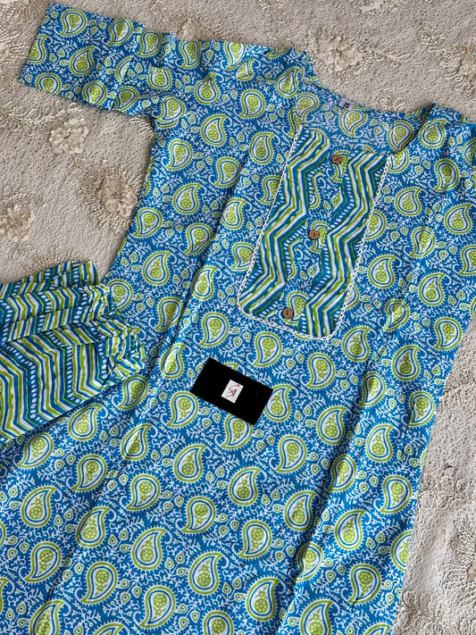 Pure HandBlock Printed Cotton Kurta N Pant Set